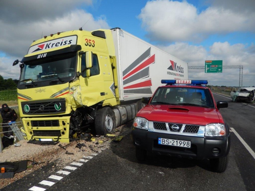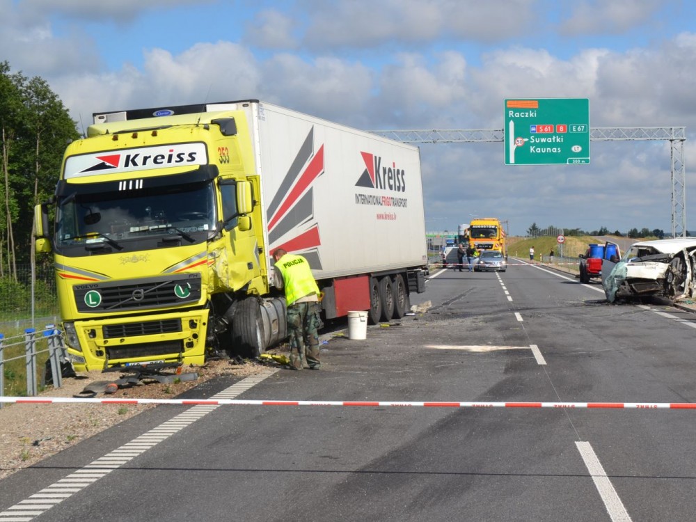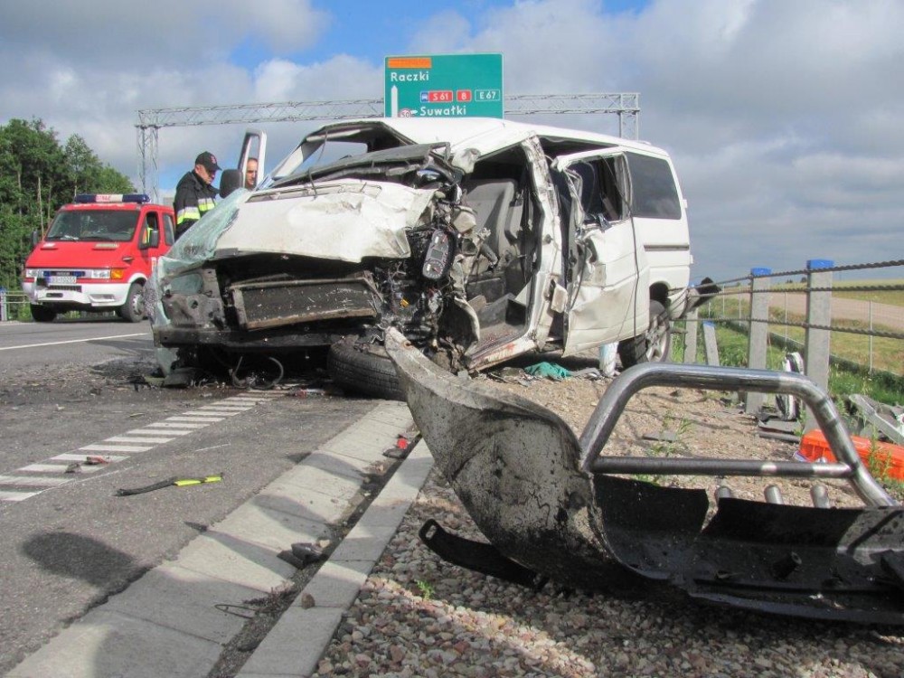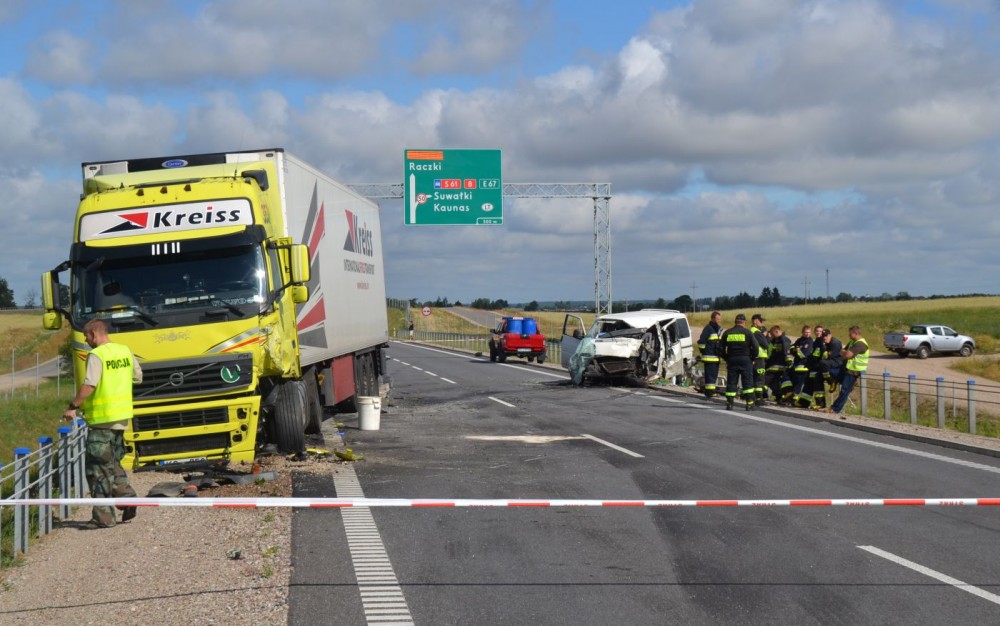- Zarówno kierowca ciężarówki jak i osoby podróżujące Volkswagenem Transporterem, to obywatele Łotwy. Do szpitala przewieziono trzy osoby z busa, w tym jedną w stanie ciężkim – mówi dyżurny suwalskiej straży pożarnej.