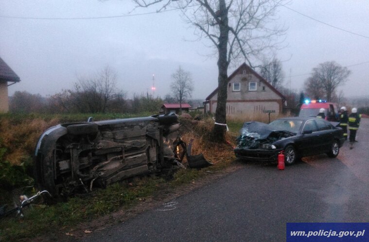 Według policyjnych ustaleń, 23- letni kierowca volkswagena passata jechał od strony Gołdapi. Na zakręcie w prawo stracił panowanie nad pojazdem, wpadł w poślizg i uderzył w jadącego z przeciwka rowerzystę, po czym zderzył się jeszcze z jadącym za cyklistą osobowym bmw.