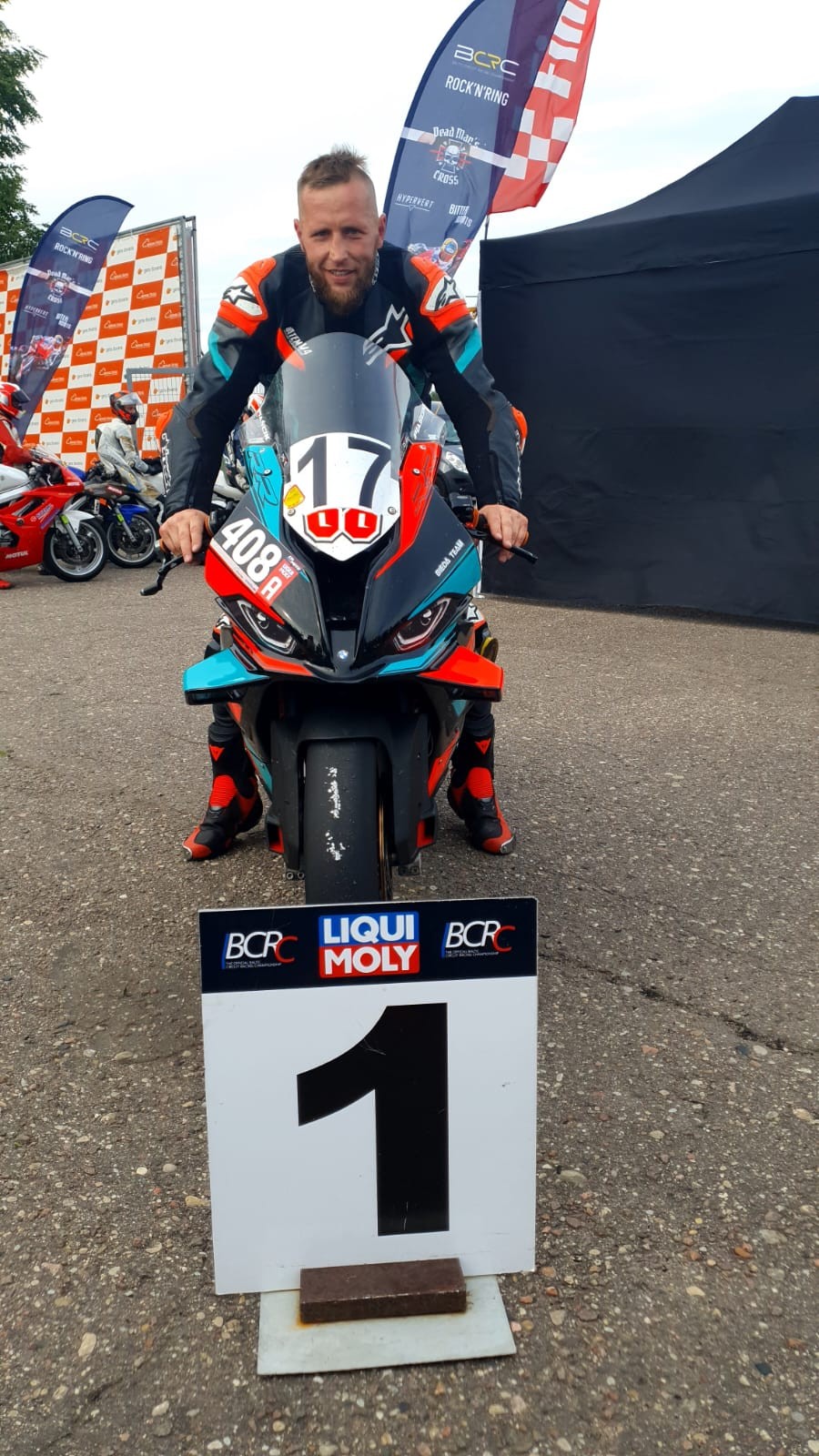 Widok przygnębiający, ale trzeba było się otrząsnąć i ścigać dalej. W kwalifikacji motocyklista z Suwałk uzyskał najlepszy czas i wyścig rozpoczął z 1. miejsca. Zaraz jednak wyprzedził go zawodnik z Litwy, a skontrowany – uczynił to jeszcze raz. Rozpoczęła się walka łokieć w łokieć o każdy metr.