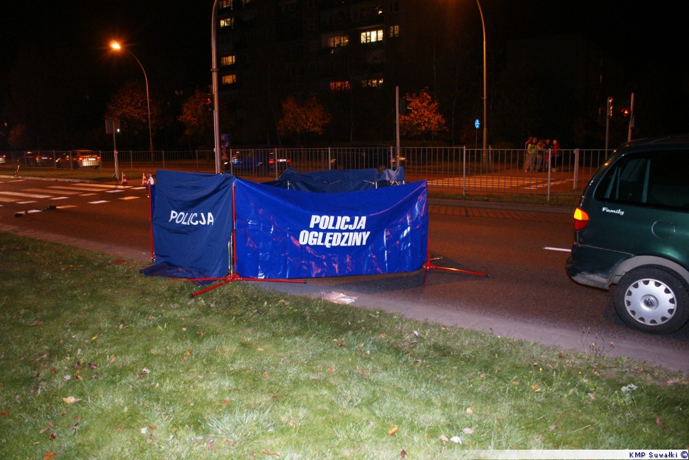 Jeszcze tego samego dnia suwalscy policjanci odnotowali kolejny wypadek drogowy. Do zdarzenia doszÅ‚o kwadrans po godzinie 18.00 na ulicy PuÅ‚askiego w SuwaÅ‚kach. Tam – jak wynika z dotychczasowych ustaleÅ„ interweniujÄ…cych policjantów – 63-letni suwalczanin na czerwonym Å›wietle wtargnÄ…Å‚ na przejÅ›cie dla pieszych wprost pod jadÄ…cego w kierunku Budziska volkswagena sharana. W wyniku wypadku pieszy zginÄ…Å‚ na miejscu. OkolicznoÅ›ci tego zdarzenia szczegóÅ‚owo badajÄ… funkcjonariusze z Komendy Miejskiej Policji w SuwaÅ‚kach.