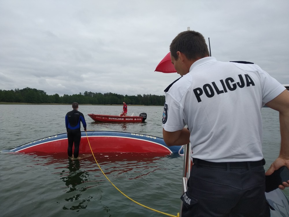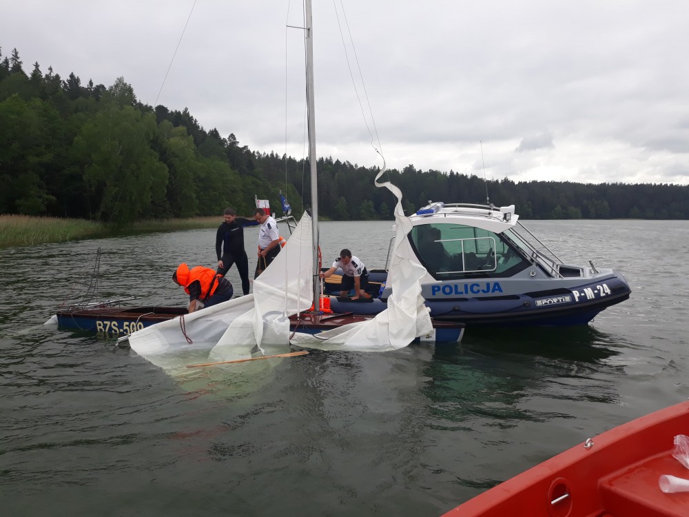 W sobotę funkcjonariusze Policji wraz z ratownikami Wodnego Ochotniczego Pogotowia Ratunkowego przyszyli z pomocą trzem osobom, których żaglówka przewróciła się na jeziorze Wigry.