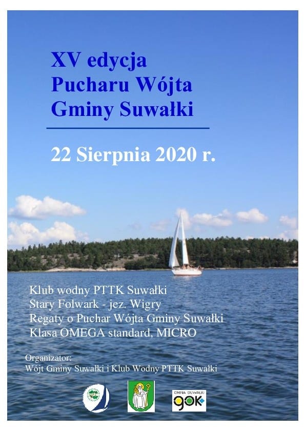 XV Regaty o Puchar Wójta Gminy Suwałki odbędą się w sobotę, 22 sierpnia, na jeziorze Wigry. Klasa OMEGA standard i MICRO.