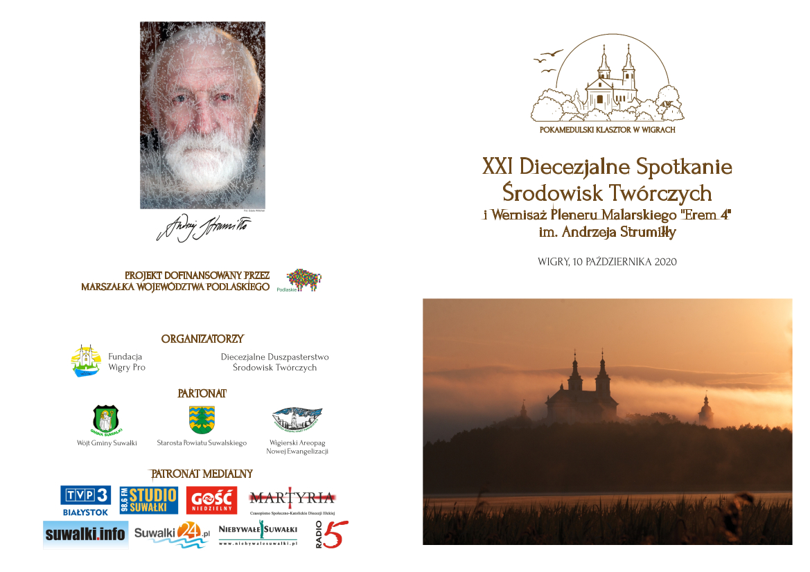 XXI Diecezjalne Spotkanie Środowisk Twórczych i Wernisaż Pleneru Malarskiego „Erem 4” im. Andrzeja Strumiłły odbędzie się 10 października w Pokamedulskim Klasztorze w Wigrach.