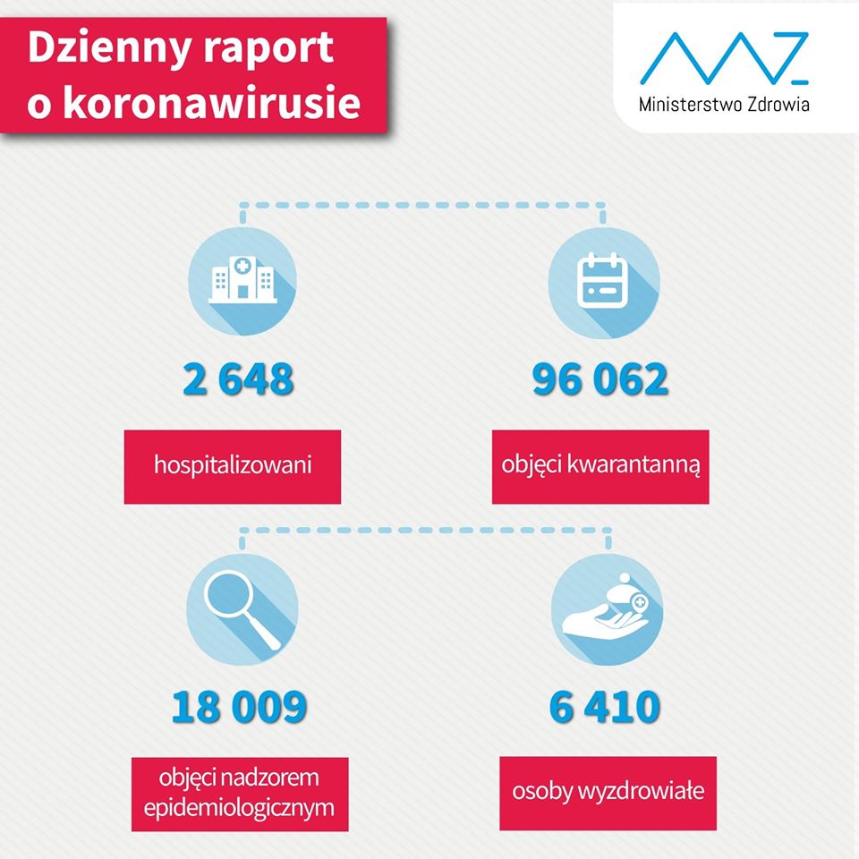 Resort zdrowia poinformował o śmierci 23 osób zakażonych koronawirusem (wiek-płeć, miejsce zgonu): 69-K Zgierz, 54-K Konin, 62-K Wrocław (mieszkanka woj. wielkopolskiego), 76-K Toruń, 73-K Wrocław (mieszkanka woj. opolskiego), 69-K i 58-K Bydgoszcz, 94-K Grudziądz, 75-K, 93-K, 77-M, 82-M Poznań, 83-K Grudziądz, 82-M, 67-K Warszawa, 60-M Siedlce, 73-M Wrocław, 52-M Zawiercie, 70-K Racibórz, 94-K, 84-K, 90-M, 90-K Wolica. Większość osób miała choroby współistniejące.