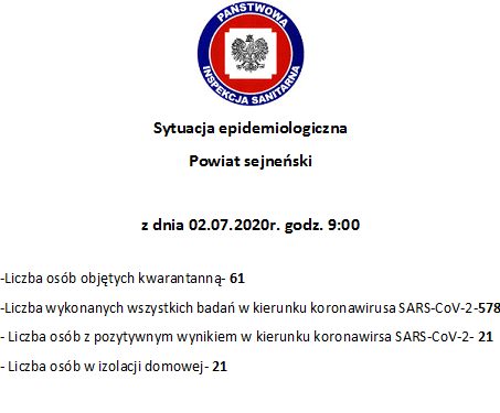 Wyzdrowiało kolejnych siedem osób (w sumie 468): starsza kobieta z powiatu hajnowskiego, trzech mężczyzn w sile wieku, młoda kobieta i kobieta w sile wieku z powiatu grajewskiego, mężczyzna w sile wieku z Białegostoku.