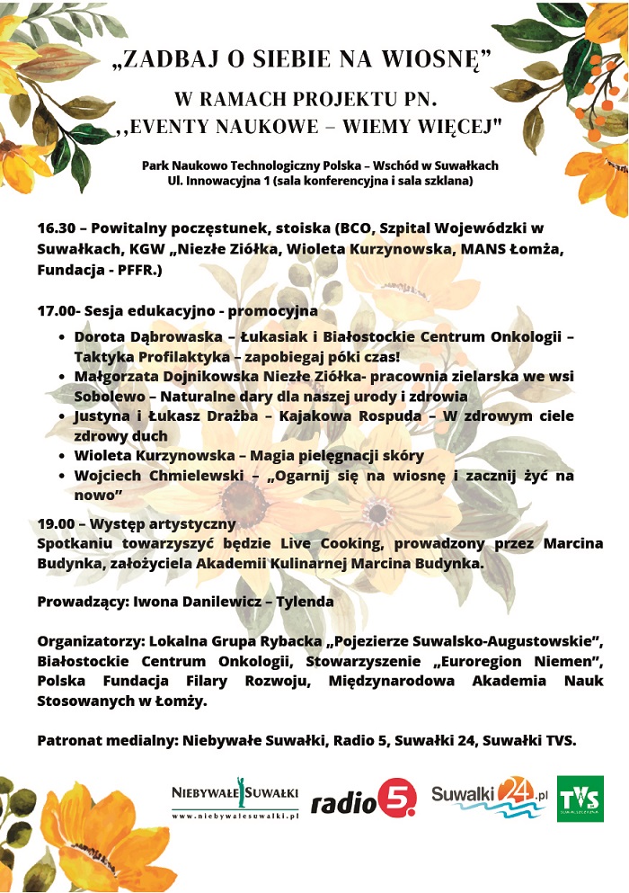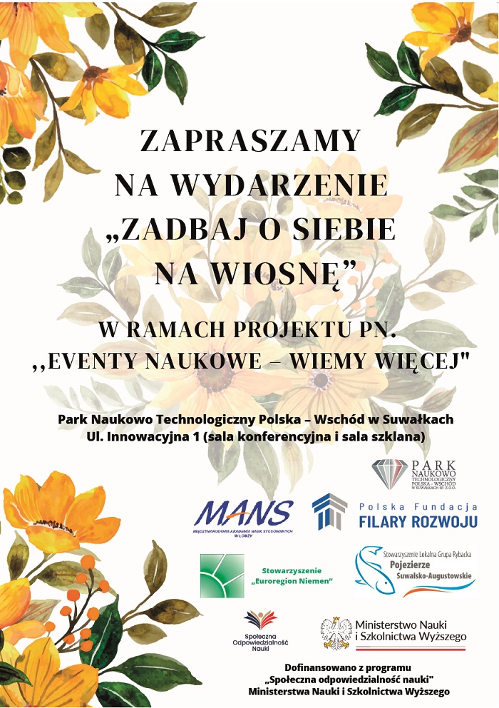 W środę, 20 marca, w Parku Naukowo – Technologicznym Polska – Wschód w Suwałkach odbędzie się spotkanie pod hasłem: „Zadbaj o siebie na wiosnę”.
