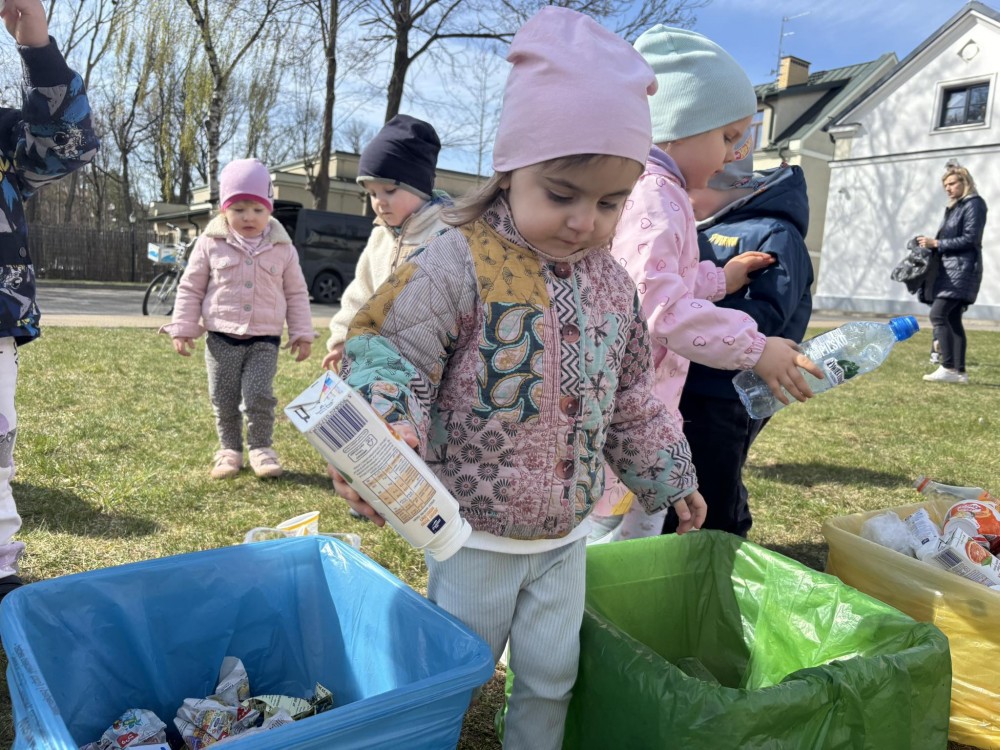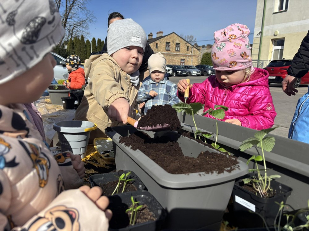 Najmłodsi Suwalczanie ze Żłobka Miejskiego także świętowali Dzień Ziemi: sadzili rośliny, uczyli się segregować odpady a także bawli się "zabawkami z recyklingu."