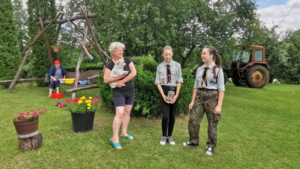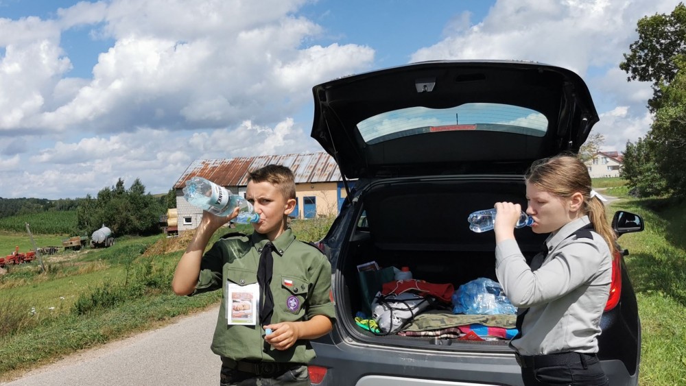 Wskazuje na grupę osób, którym w imieniu swoim i harcerzy chciałby szczególnie podziękować. Należą do nich rodzice harcerzy Barbara Kalinowska, Tomasz Grzędziński i Iwona Wilczewska, którzy zapewnili transport do i z miejsca zbiórki. Podziękowania za zaproszenie na zimną oranżadę podczas upalnego dnia kieruje do Katarzyny Pomichter z Rutki-Tartak. Na wyrazy wdzięczności jego zdaniem zasłużył, jak zwykle niezawodny, proboszcz ze Smolnik ksiądz Jacek Chałko, który rozpropagował akcję wśród parafian.