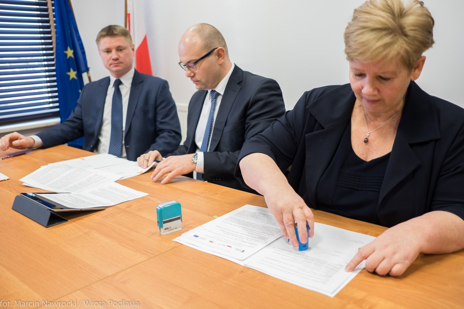 UmowÄ™ na dofinansowanie ZespoÅ‚u Opieki Paliatywnej w SuwaÅ‚kach podpisali – MarszaÅ‚ek Województwa Podlaskiego Artur Kosicki, czÅ‚onek zarzÄ…du województwa Marek Malinowski oraz dyrektor ZespoÅ‚u Opieki Paliatywnej w SuwaÅ‚kach Irena Mickiewicz.