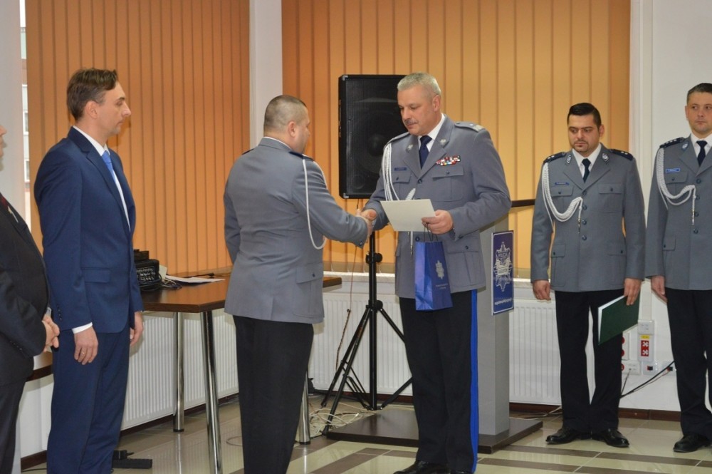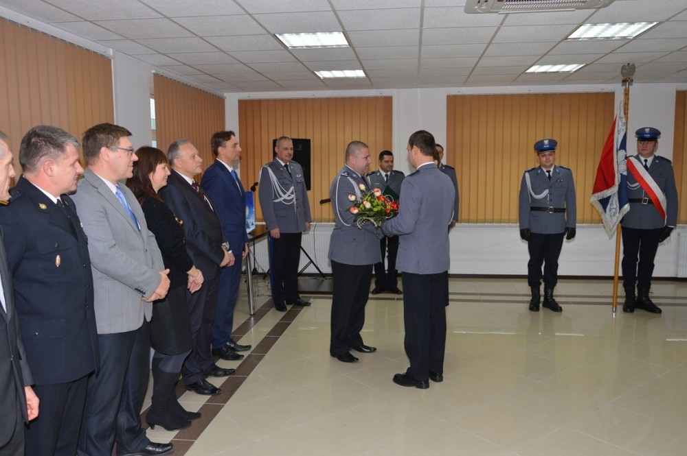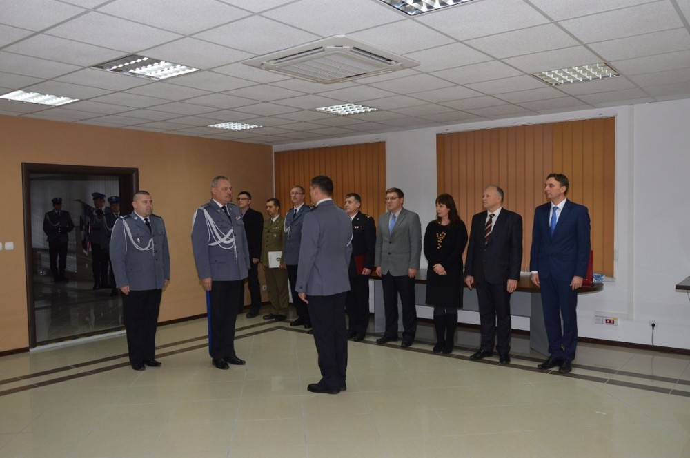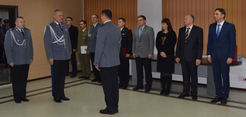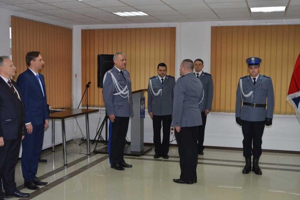 Podlaski Komendant Wojewódzki Policji nadinspektor SÅ‚awomir Mierzwa wrÄ™czyÅ‚ w poniedziaÅ‚ek akt powoÅ‚ania na stanowisko Komendanta Powiatowego Policji w Augustowie mÅ‚odszemu inspektorowi Danielowi KoÅ‚nierowiczowi.