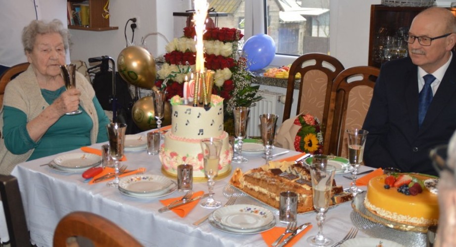 Na fot. Romuald Dzienis podczas obchodów setnych urodzin Wandy Czuper
