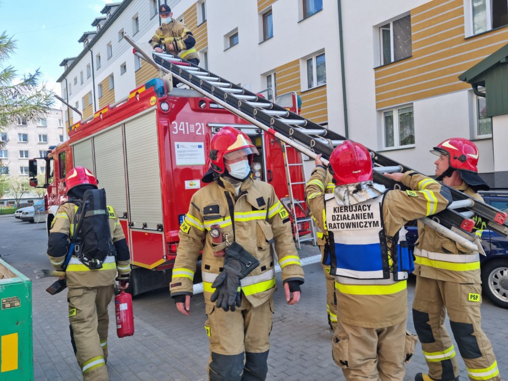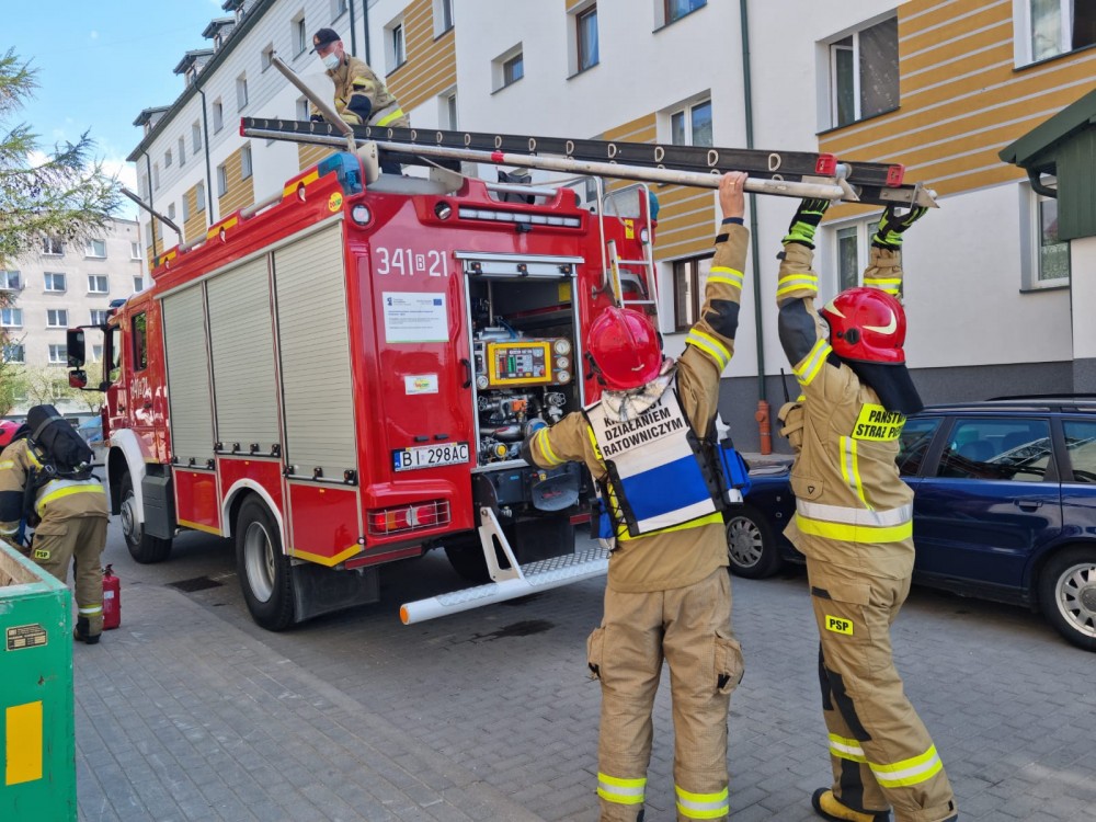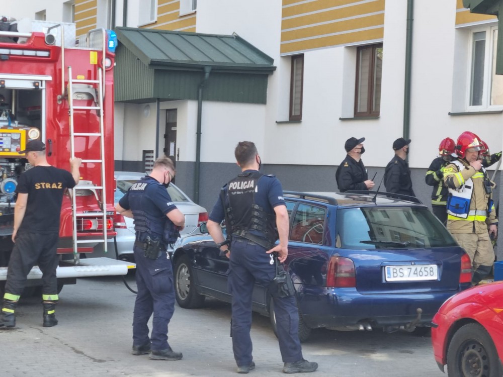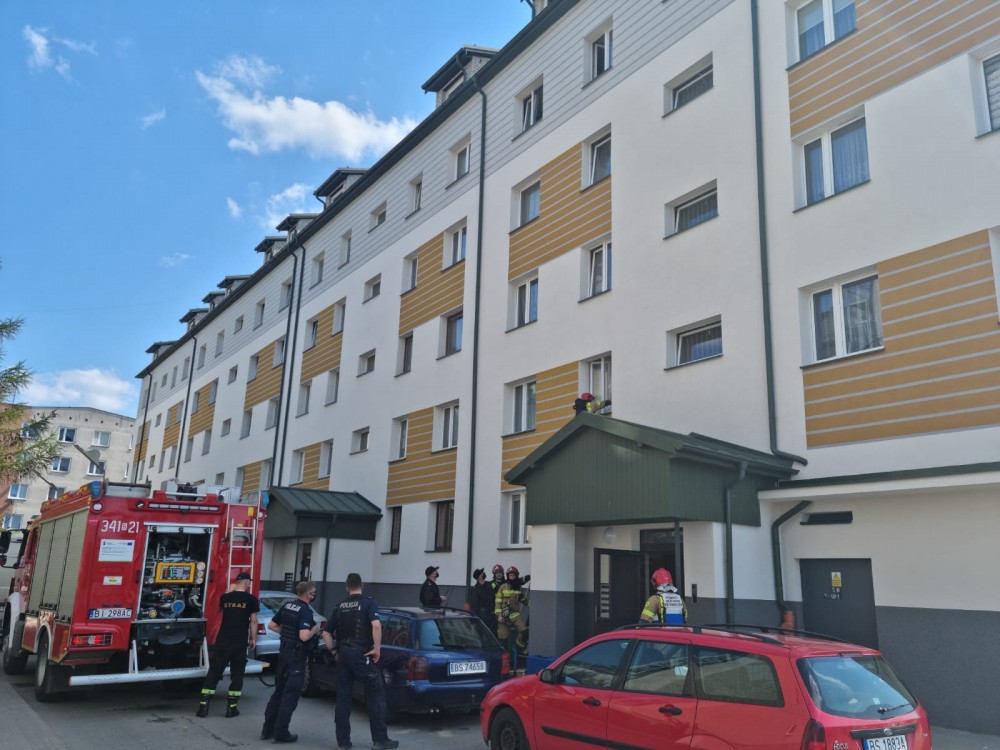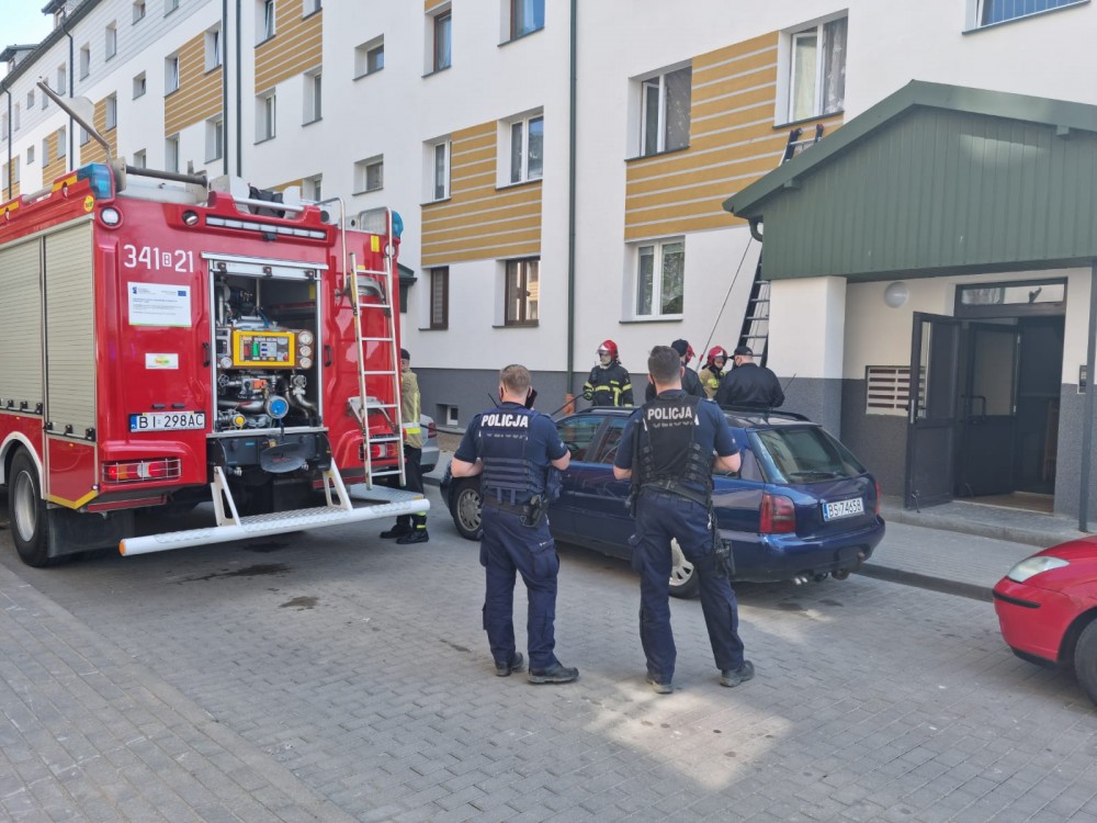 Dwa zastępy straży pożarnej i policjanci interweniowali w środowe popołudnie w jednym z bloków na osiedlu Północ w Suwałkach.