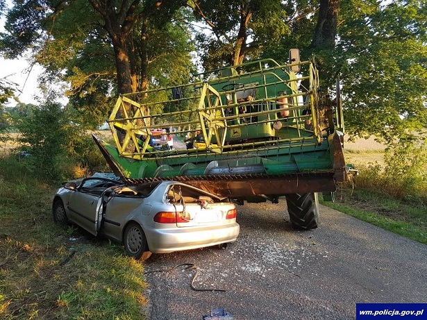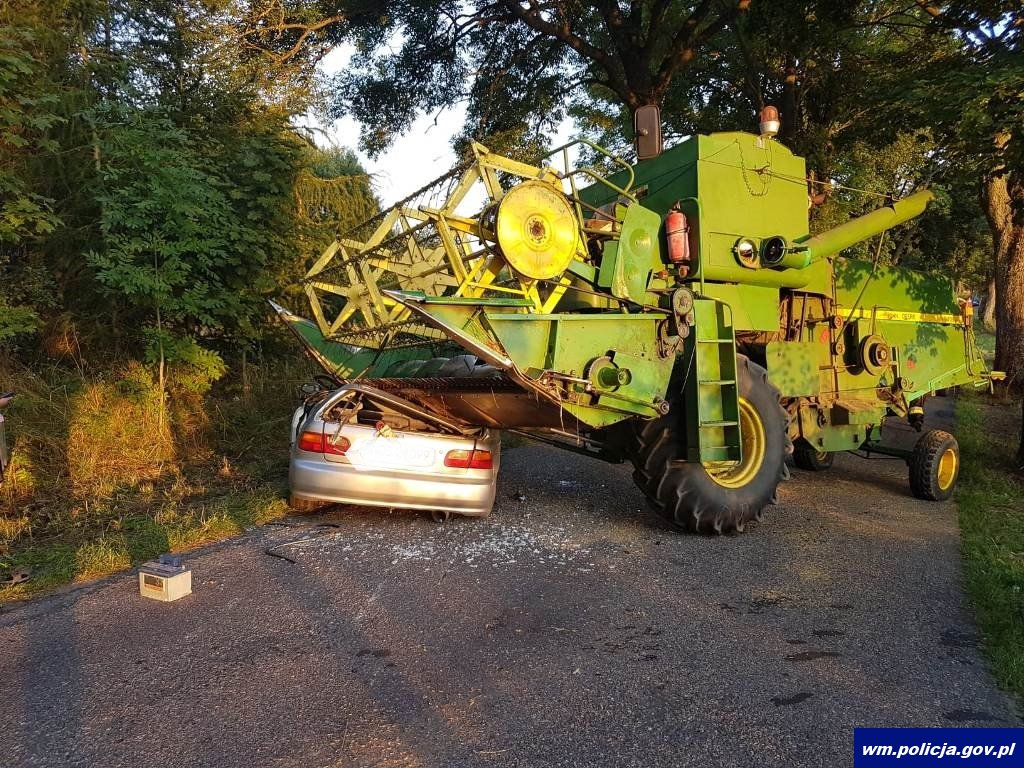 Widok kombajnu na drodze, nie powinien być dla nikogo zaskoczeniem! No akurat dla kierującego tym autem 24-latka był. Kierowca hondy, w miejscowości Kitnowo w województwie warmińsko-mazurskim nie dostosował prędkości do warunków ruchu, wyjeżdżając ze wzniesienia zjechał na przeciwległy pas jezdni i wjechał pod nadjeżdżający kombajn. Mimo, że zdarzenie wyglądało groźnie, na szczęście nikt nie odniósł obrażeń. Badanie na zawartość alkoholu w organizmie 24-letniego kierowcy wykazało 0,3 promila. Mimo, iż jest to wartość „wykroczeniowa”, mężczyzna stracił swoje prawo jazdy.