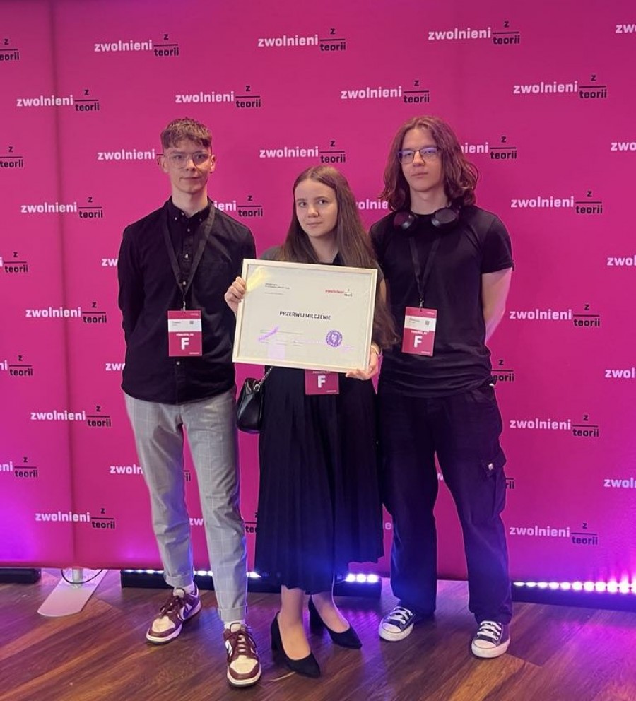 - Przerwij milczenie – projekt realizowany przez Sylwię Chmielewską (liderkę zespołu), Dawida Sobuń, Edytę Jankowską oraz Mateusza Świerzbin, pod opieką Izabeli Klahs-Malinowskiej. Inicjatywa miała na celu przeciwdziałanie przemocy w szkole i poza nią. Projekt koncentrował się na edukacji uczniów na temat przemocy, jej rozpoznawania oraz dostępnych form wsparcia.