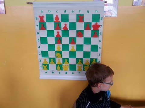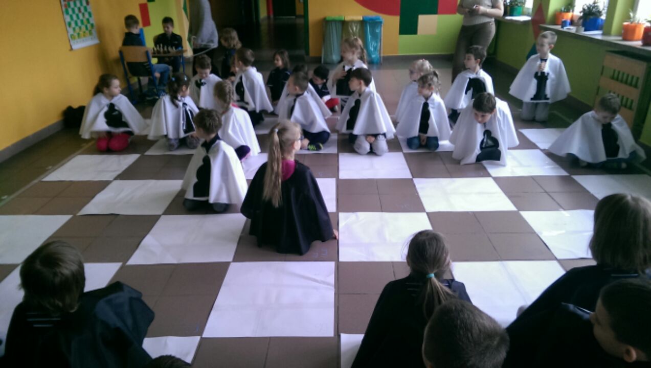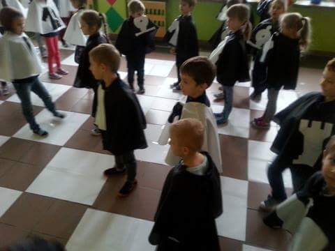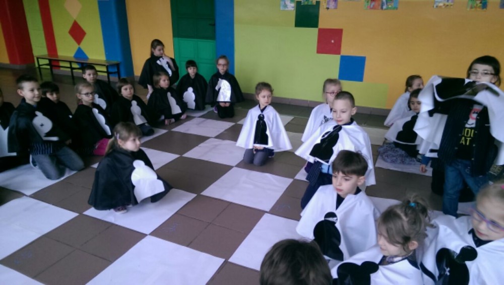 Przebrane w biaÅ‚e i czarne kostiumy dzieci musiaÅ‚y poruszać siÄ™ tak jak hetman, czy skoczek. Najpierw w zabawie wziÄ™li udziaÅ‚ uczniowie z czterech pierwszych klas, później - w ramach realizacji programu Most, do wspólnego poruszania siÄ™ na szachownicy pierwszaki zaprosiÅ‚y dzieci z oddziaÅ‚u przedszkolnego.