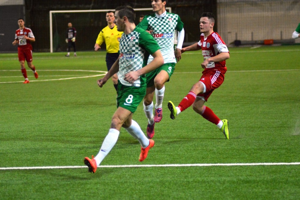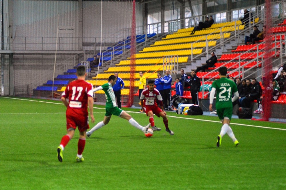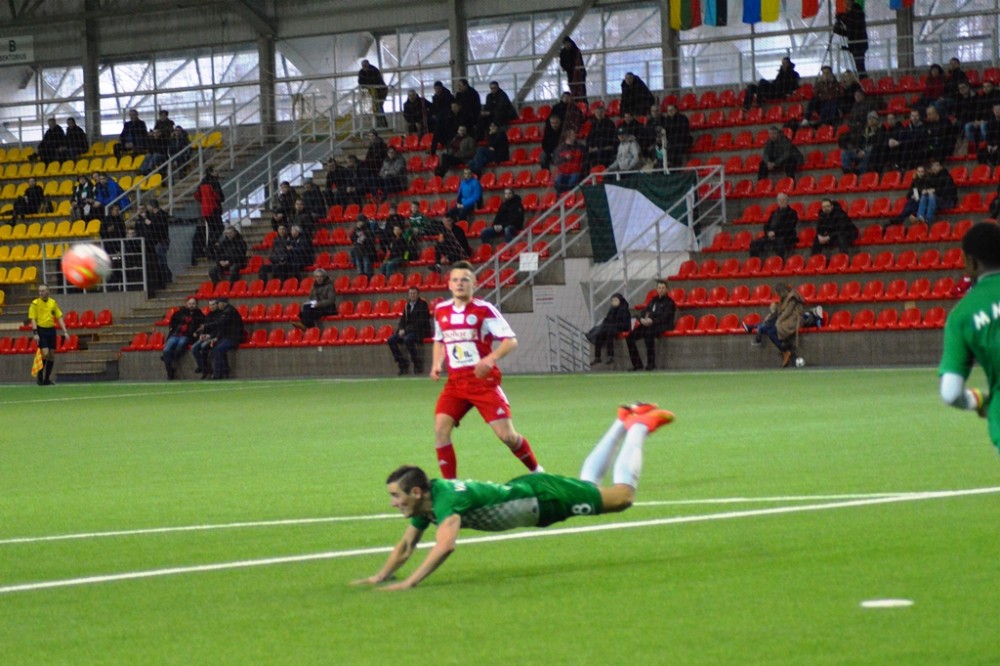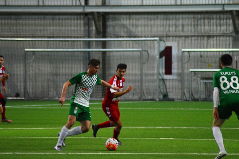 W piłkarskiej hali w Wilnie na bardzo dobrej sztucznej nawierzchni suwalscy pierwszoligowcy jak równy z równym poczynali sobie z mistrzem Litwy. Bezradni momentami gospodarze uciekali się do brutalnej gry.