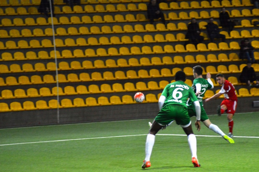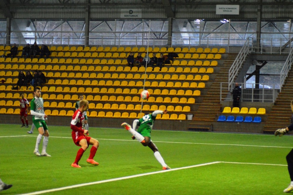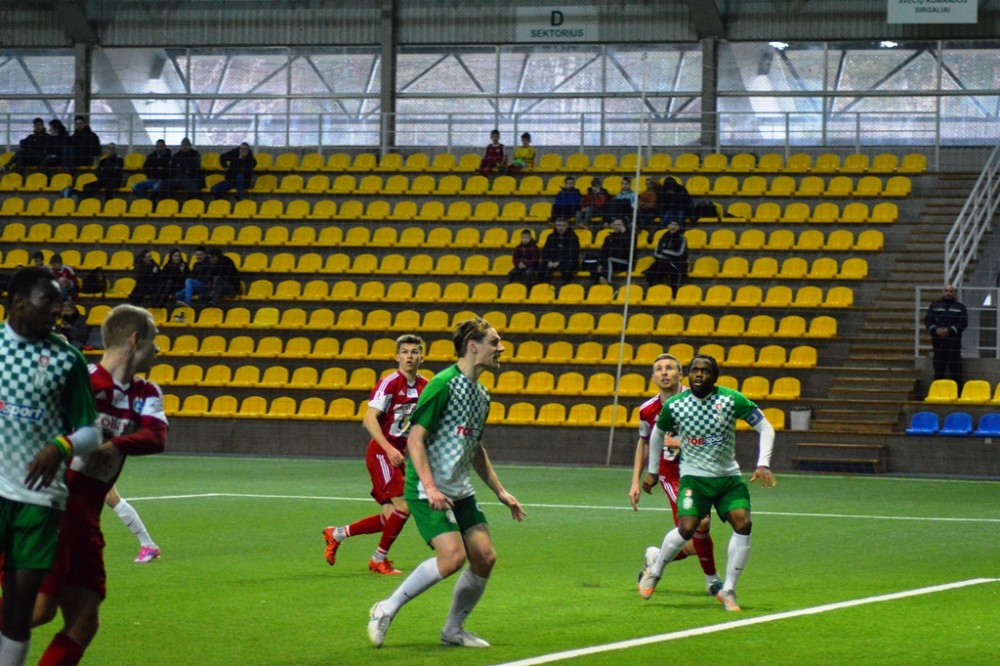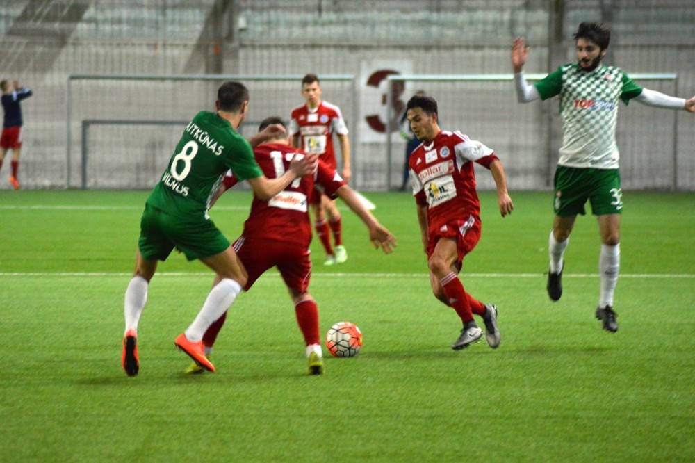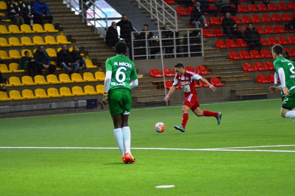 W pierwszej połowie bardzo dobrze w przodzie poczynali sobie Omar Santana, Miłosz Kozak i Aleksandar Atanacković. Bliski zdobycia gola, po dośrodkowaniu z rożnego, był Tomasz Jarzębowski. Mistrzowie Litwy, wśród których najlepszy był chyba lewonożny Donavan Slijngard, stworzyli jedna 100-procentową okazję i przeprowadzili kilka groźnych, oskrzydlających akcji, ale bezbłędny w bramce był Karol Salik. Remis po dobrej pierwszej połowie był jak najbardziej zasłużony.