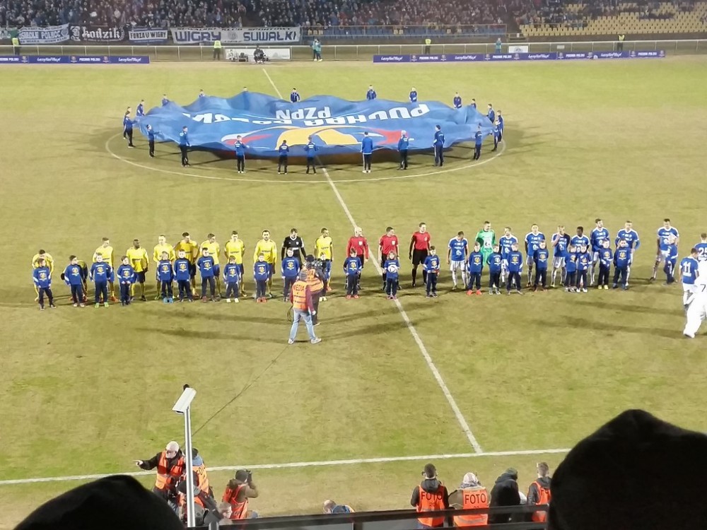 68 po dośrodkowaniu z lewej strony Siemaszko wyskoczył wyżej od Zapolnika i z 5 metrów strzałem głową pokonał Podleśnego