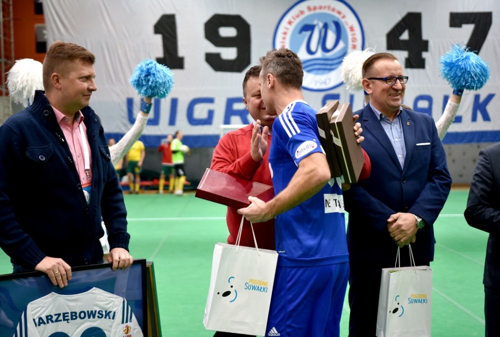 Grecy, którzy koniecznie chcieli uświetnić swój debiut zwycięstwem, nie sprostali pierwszoligowcom z Wigier. W najbardziej widowiskowym spotkaniu w którym Giorgos Karagounis wychodził wprost z siebie, gospodarze wytrzymali okres badania sił i wygrali aż 5:1. Zwycięstwem nad mistrzami Europy występy w Wigrach zakończyli świetnie interweniujący Karol Salik i zdobywca pierwszej bramki Tomasz Jarzębowski, których wzruszającą uroczystością pożegnania zaskoczył prezes klubu Dariusz Mazur. Suwalczanie zdominowali Greków młodością i szybkością, ale też błysnęli kilkoma błyskawicznymi akcjami.