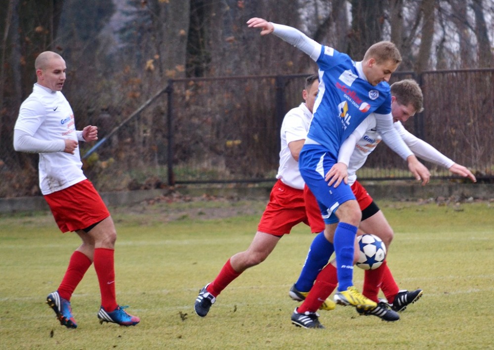 Już w 7 minucie meczu IV ligi Sokół Sokółka - Wigry II Suwałki poważnej kontuzji uległ Tomasz Sawicki (na fot. w niebieskim stroju). Napastnik suwalczan doznał złamania ręki z przemieszczeniami i trafił do szpitala. Na karetkę pogotowia trzeba było czekać około 30 minut. Mecz wznowiono, ale Wigry II zostały rozbite przez outsidera Sokół 0:3 i straciły przodownictwo w tabeli na rzecz Wissy Szczuczyn.