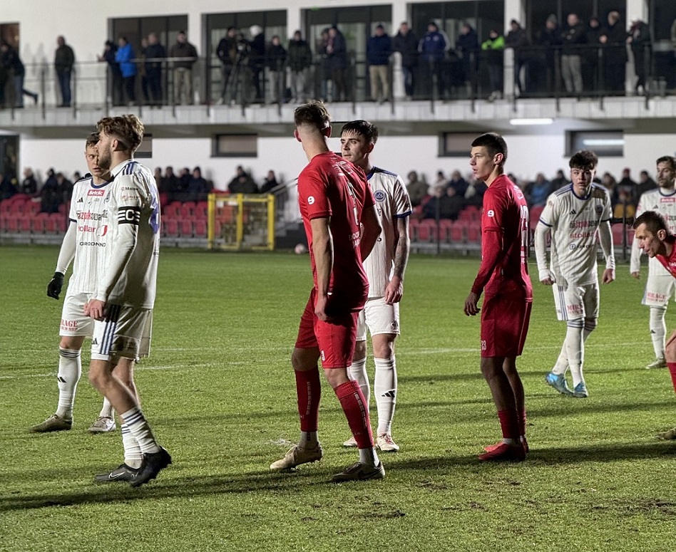 Zupełnie inny obraz gry mieli kibice w piątkowy wieczór. Spotkanie bardzo niemrawe w pierwszej połowie, przeplatane licznymi faulami i zatrzymywaniem gry przez sędziego nie dawało radości ani sympatykom obu drużyn, ani samym zawodnikom. I tylko ostatnie pół godziny spotkania przyniosło po jednym trafieniu do bramki, kilka fantastycznych interwencji Mateusza Taudula oraz pewnych obron Michała Leszczyńskiego. Pierwszą taką obroną golkiper Wigier wykazał się w 59 minucie przy uderzeniu Kacpra Kondrackiego.