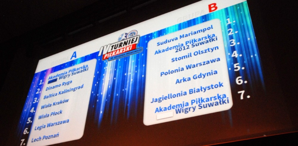 I nie miała dobrej ręki dla zespołów, które „umieściła” w grupie A, która trenerzy nazwali „grupą śmierci”. Nic dziwnego, bowiem znalazły się w niej dwa zespoły zagraniczne, cztery, z sześciu startujących, młodzieżowe ekipy drużyn z polskiej ekstraklasy i ... Akademia Piłkarska Wigry Suwałki. W grupie B obok Arki i Jagielloni, są dwa zespoły z Suwałk AP Wigry i Akadenia 2012, a z ekip zagranicznych Suduva Mariampol. Z przyczyn „obiektywnych” nie przyjechała na turniej ekipa Karpat Lwów, której miejsce zajęła druga drużyna AP Wigry.