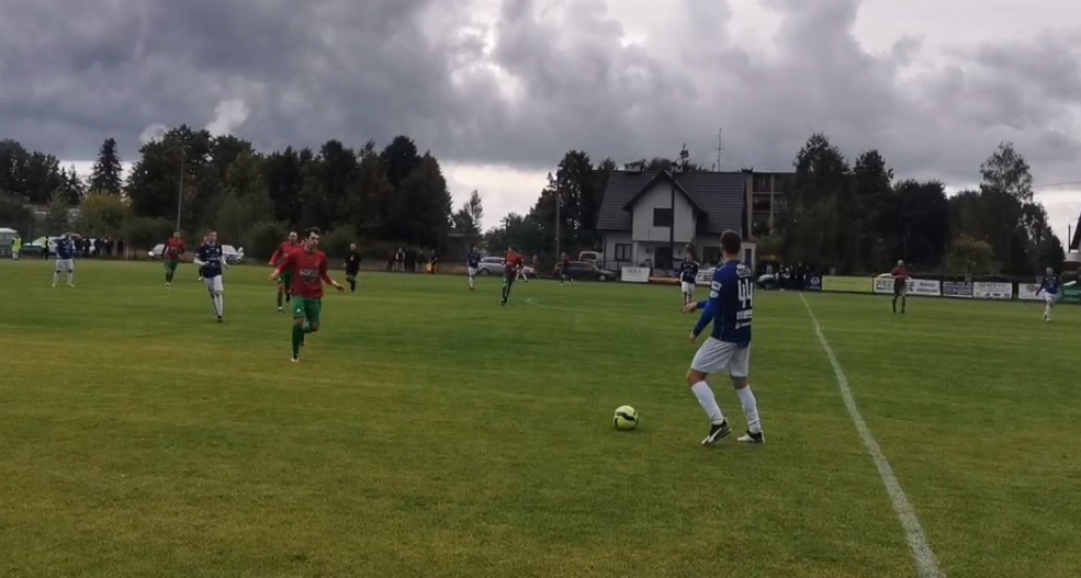 Gospodarze nie rzucili się do ataku by odrobić straty i wciąż przy piłce utrzymywali się podopieczni Kamila Lauryna i chwilę później było 0:2 dla suwalskich Wigier. Dośrodkowanie na 11 metr wykorzystał wtedy Wojciech Łada i przepięknym uderzeniem z woleja podwyższył prowadzenie.