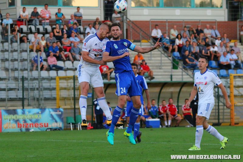 Mateusz Radecki i Łukasz Wroński w ostatni spotkaniu z Wisłą Puławy weszli na boisko z ławki rezerwowych, a w Legnicy zagrali w podstawowym składzie. Trener Dominik Nowak, który zapewniał, że ma pomysł, jak pokonać Miedź, tymi dwiema roszadami w podstawowej „11” chciał zaskoczyć i zaskoczył gospodarzy. Biało-niebiescy co rusz wyprowadzali błyskawiczne kontry, po których i oni mogli jeszcze przed przerwą prowadzić, i to nawet dwoma bramkami.