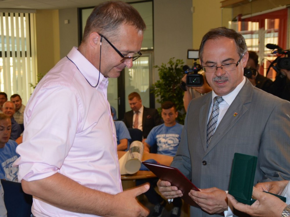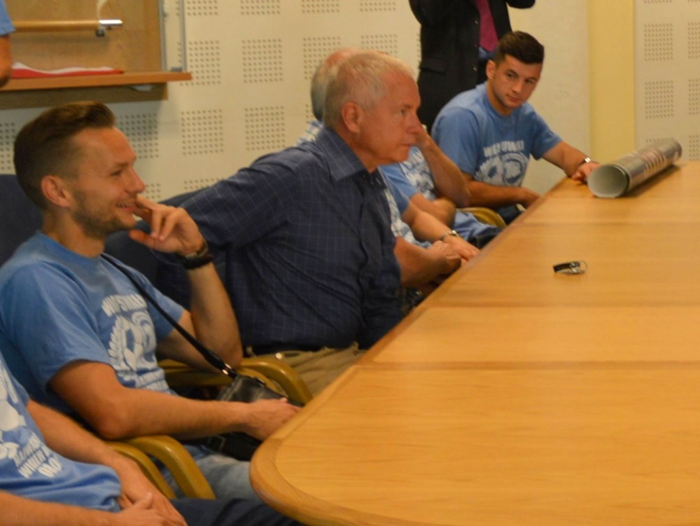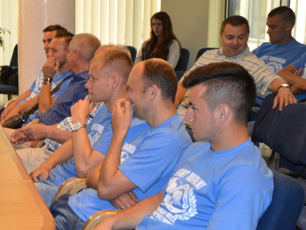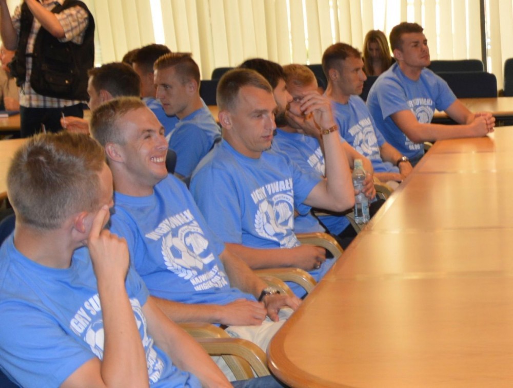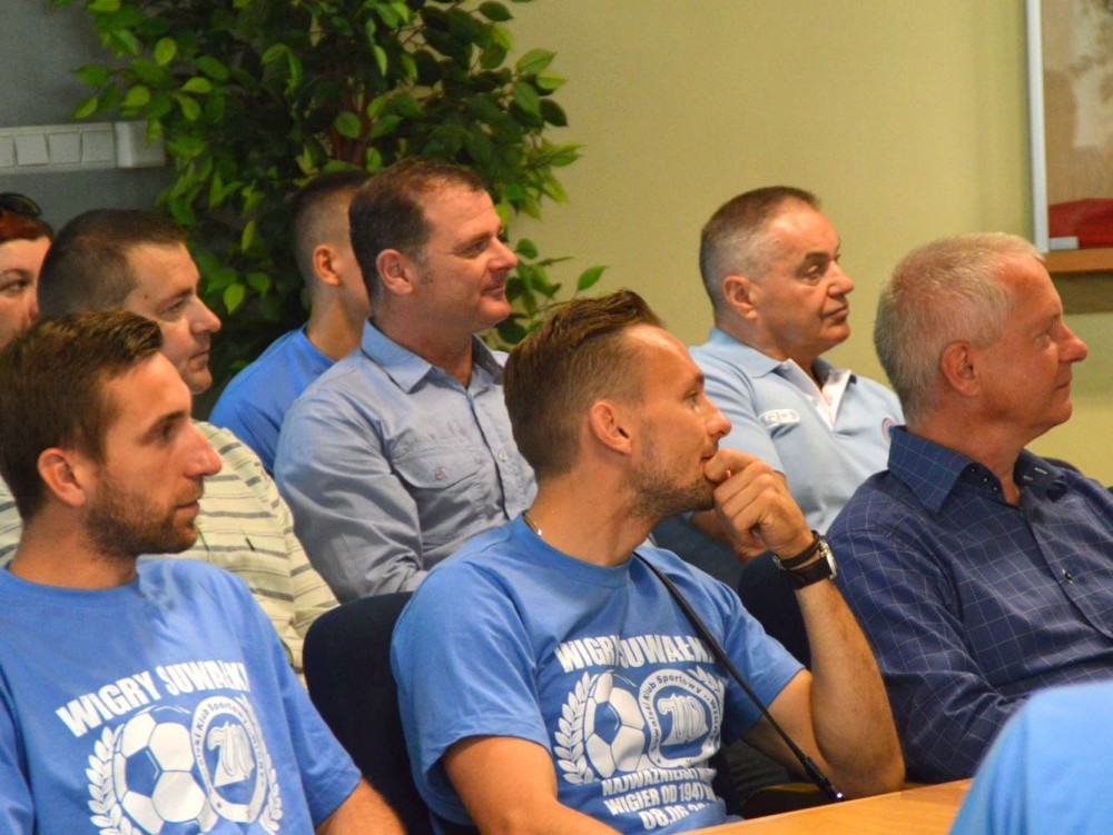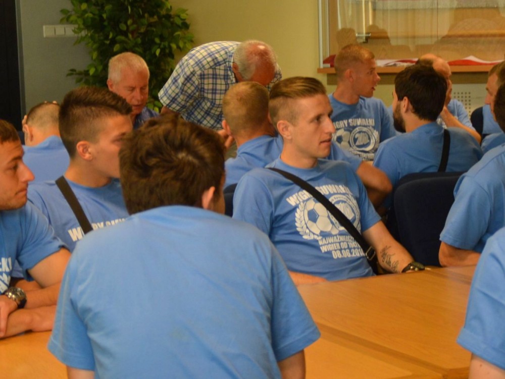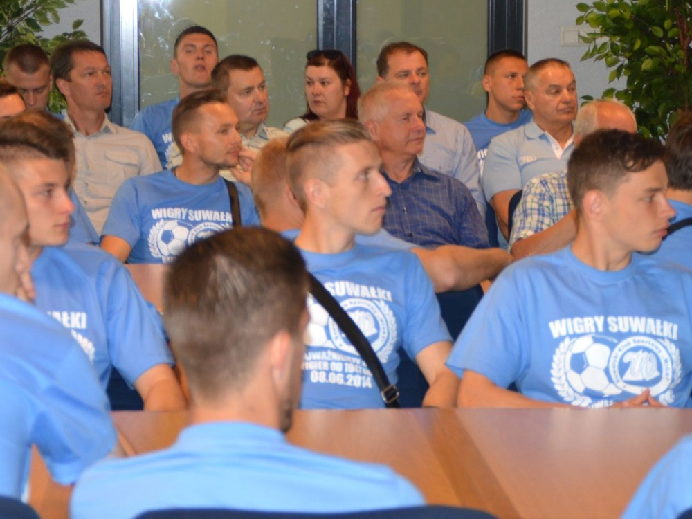 Piłkarze, trenerzy, pracownicy i działacze suwalskich Wigier otrzymali dzisiaj od przedstawicieli władz samorządowych podziękowania i nagrody za awans do pierwszej ligi. Prezydent Suwałk obiecał większe wsparcie finansowe miasta, taką samą deklaracje złożył Dariusz Mazur, prezes klubu i firmy Oil Transfer Development, głównego sponsora biało-niebieskich.