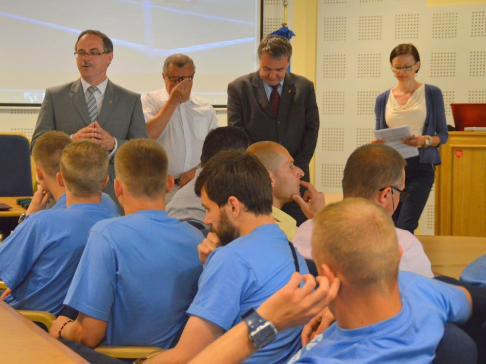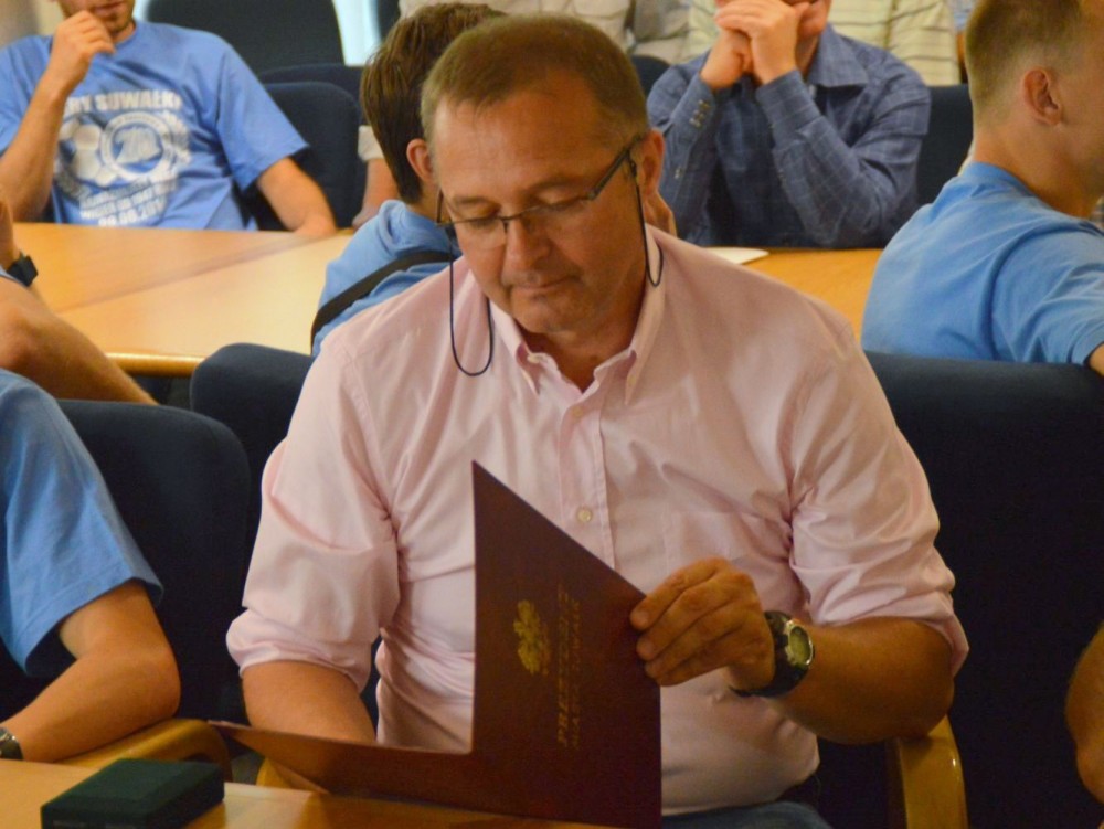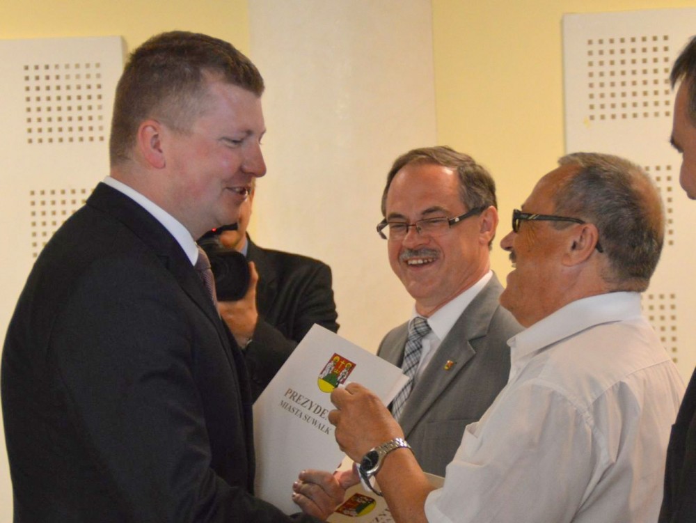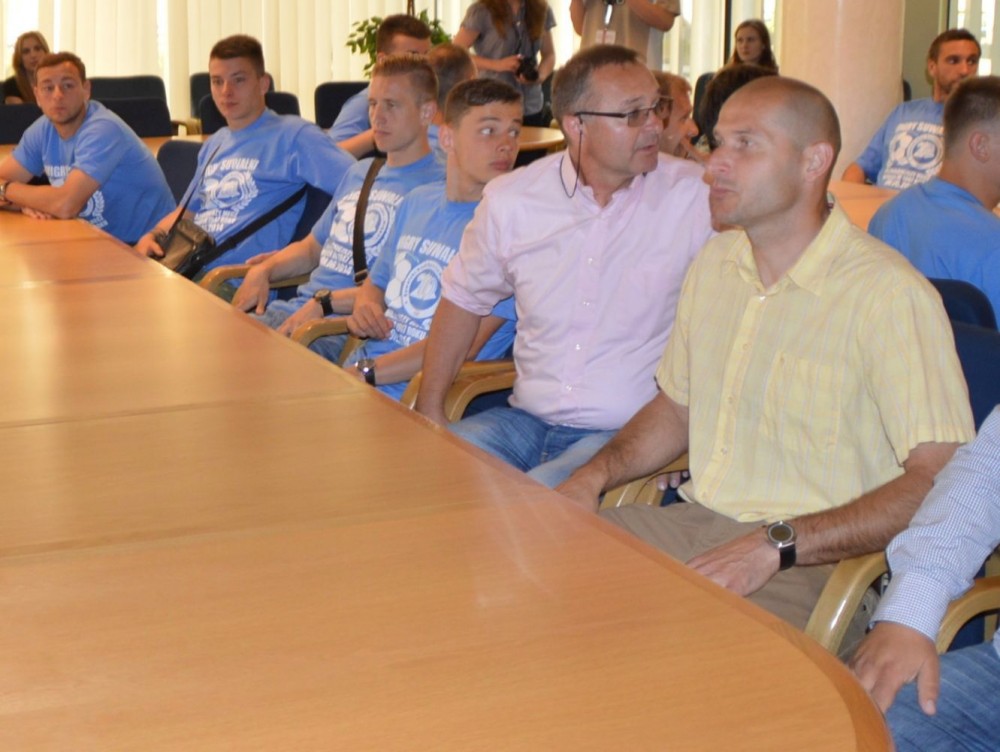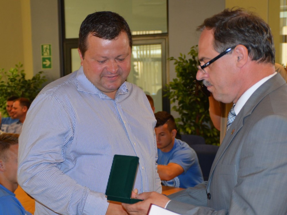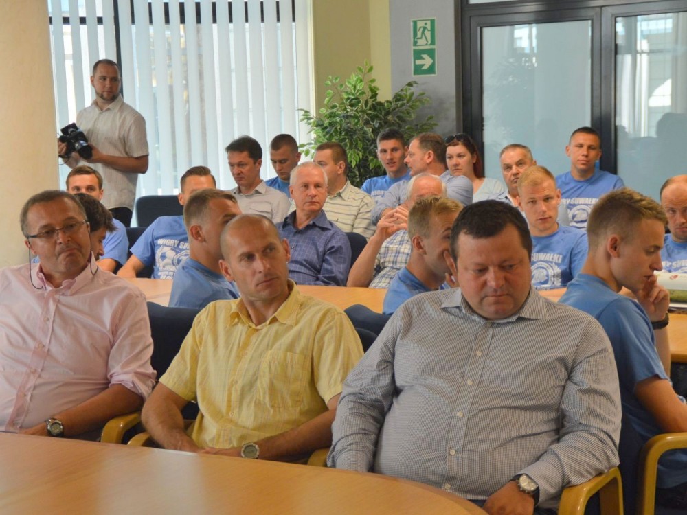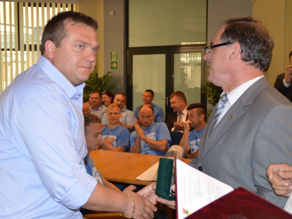 Piłkarze, trenerzy, pracownicy i działacze suwalskich Wigier otrzymali dzisiaj od przedstawicieli władz samorządowych podziękowania i nagrody za awans do pierwszej ligi. Prezydent Suwałk obiecał większe wsparcie finansowe miasta, taką samą deklaracje złożył Dariusz Mazur, prezes klubu i firmy Oil Transfer Development, głównego sponsora biało-niebieskich.