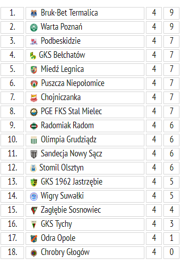 Olimpia fantastycznie wystartowała - od 5:0 z Chrobrym Głogów i 1:0 w Sosnowcu. Potem przegrała 3:5 z Chojniczanką Chojnice i 0:2 ze Stalą w Mielcu, czyli z zespołami z którymi Wigry zremisowały po 1:1.