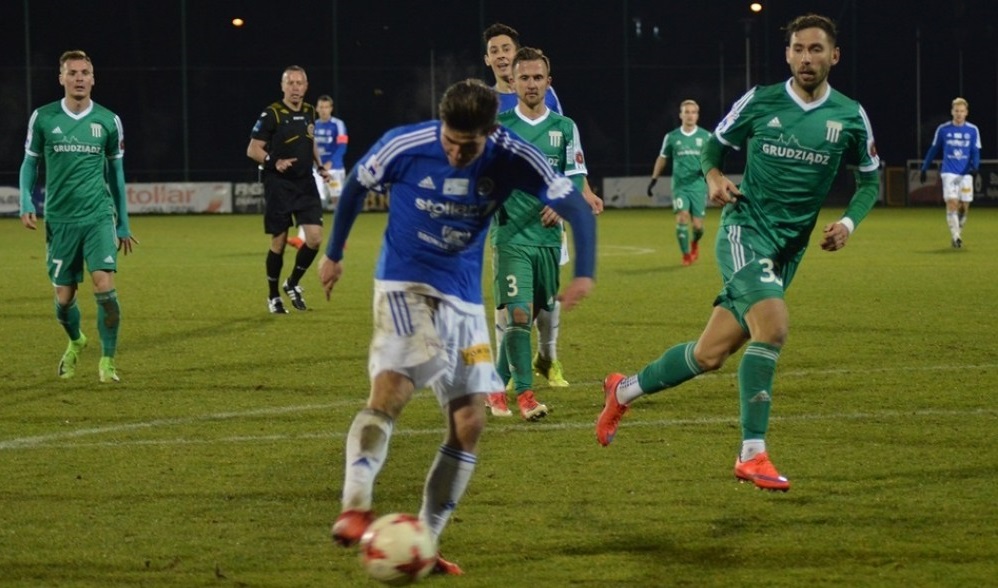 Oba zespoły mierzyły się w czterech pierwszoligowych sezonach. Remis padł tylko raz, cztery razy wygarli grudziądzanie, a trzy - Biało-Niebiescy (u siebie ostatnio 1:0, 26 listopada 2017 r. - na zdjęciu).
