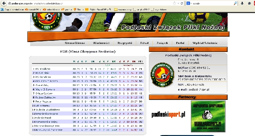 A oto dowód porządku – wykonany 26.04.2014 o godz. 20.28 scrin tabeli rozgrywek klasy okręgowej seniorów zamieszczonej w zakładce „rozgrywki”.