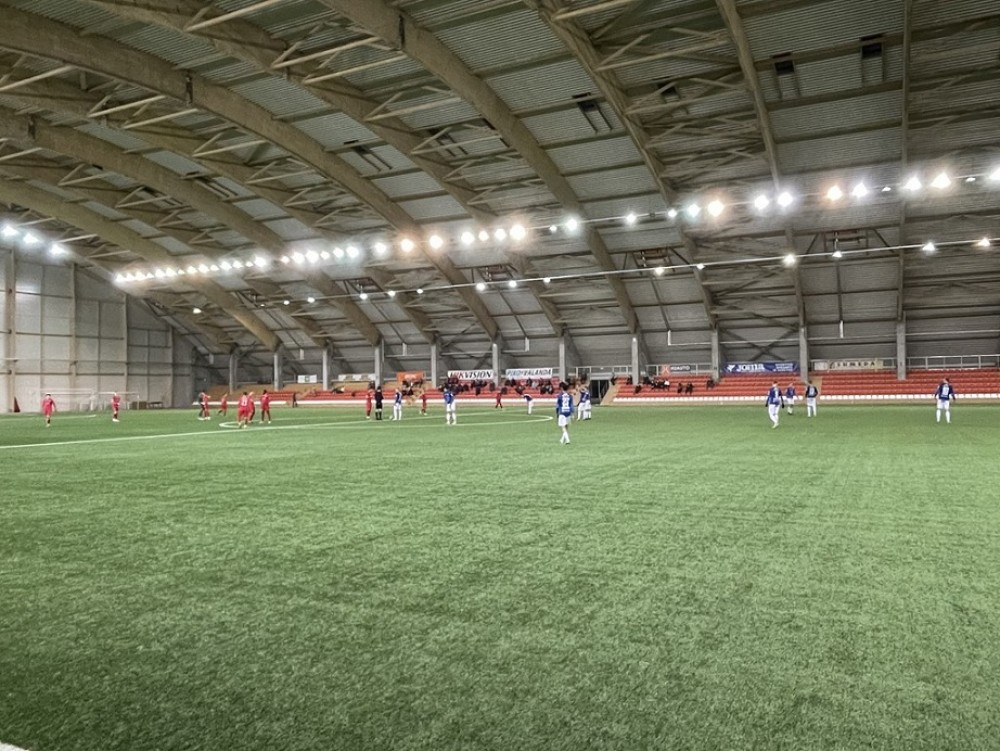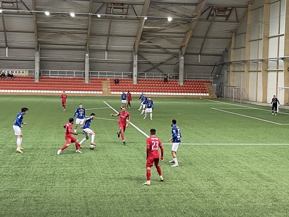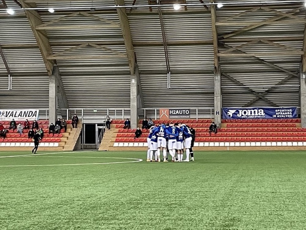 Spotkanie z Suduvą toczone było w szybkim tempie. Do przerwy żadna z drużyn nie zdobyła bramki. Warunki starała się narzucić rozgrywająca swój pierwszy sparing drużyna z Mariampola, ale trudno jej było przedrzeć się przez szyki ustawione przez Biało-Niebieskich, którzy nastawili się na kontry i groźnie strzelali z dystansu. Najlepszą okazje dla gospodarzy miał w 37 minucie Gruzin Levan Macharaszwili, ale za lekko uderzył lewą nogą.