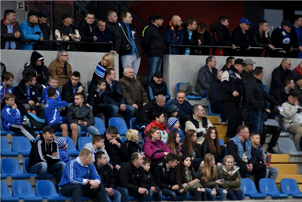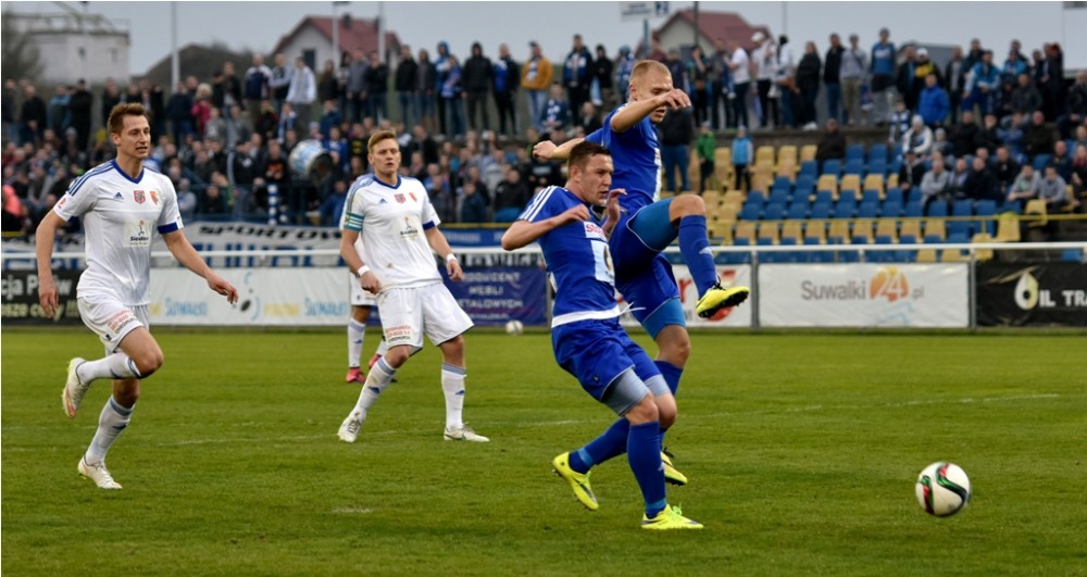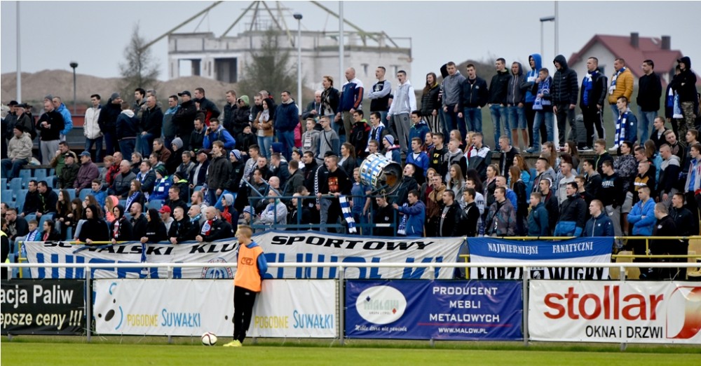 Blisko dwa tysiące kibiców dopingowało suwalskich pierwszoligowców w ich nareszcie wygranym spotkaniu na własnym stadionie. Dla dwojga z nich nasz portal, jak zwykle, ufundował upominki, tym razem wespół z WOSiR-em Szelment.