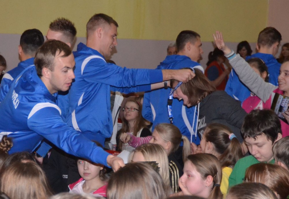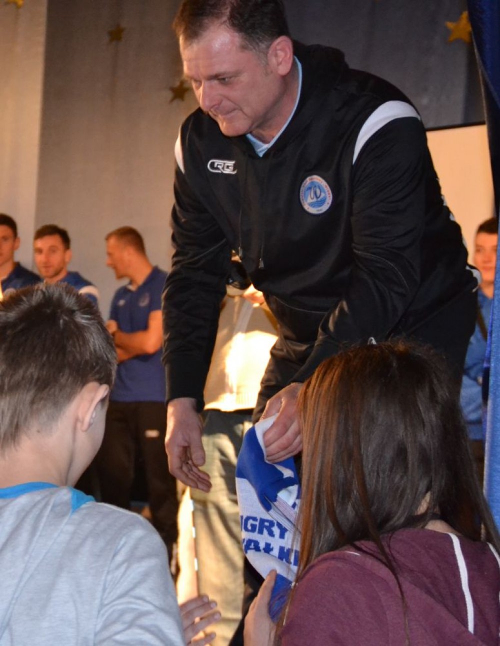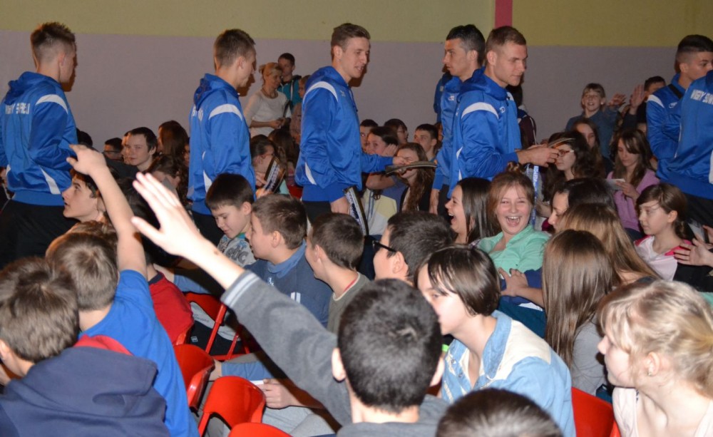 Do szkoły, przy której trenowali od stycznia, piłkarze Wigier wrócili niemal prosto ze zgrupowania w Turcji. Nie spodziewali się aż tak gorącego przyjęcia. Dziewczęta i chłopcy oklaskiwali zawodników, wśród których pojawiło się siedmiu nowych graczy, oraz szkoleniowców. Suwalski zespół wiosną powalczy o historyczny sukces, o awans na zaplecze ekstraklasy. Ambicje nie są bezpodstawne, do premiowanego awansem drugiego miejsca w tabeli Wigry tracą tylko jeden punkt.
