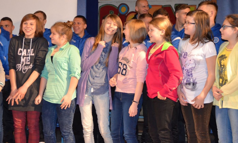 Kibice mają być 12. zawodnikiem drużyny, a próbkę wspaniałego dopingu uczniowie „Siódemki" wielokrotnie pokazali podczas trwającego niemal godzinę spotkania z piłkarzami. Reprezentacje szkoły pokonały ich w konkursach przeciągania liny, nie były gorsze w żonglowaniu piłką. Były nagrody, pamiątkowe zdjęcia i autografy.