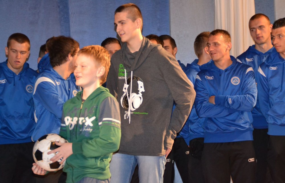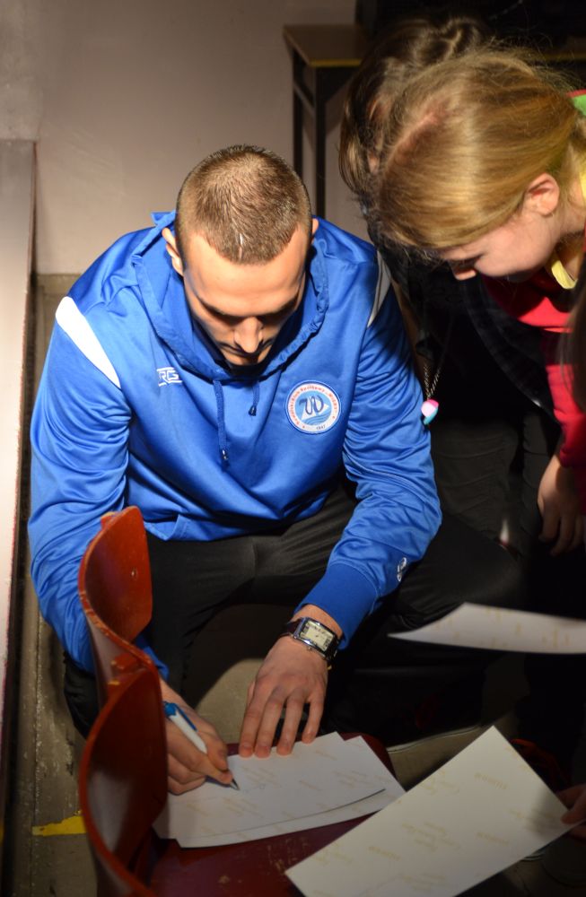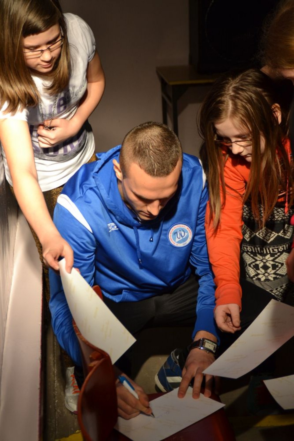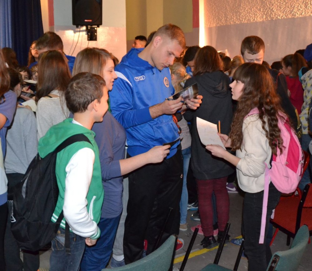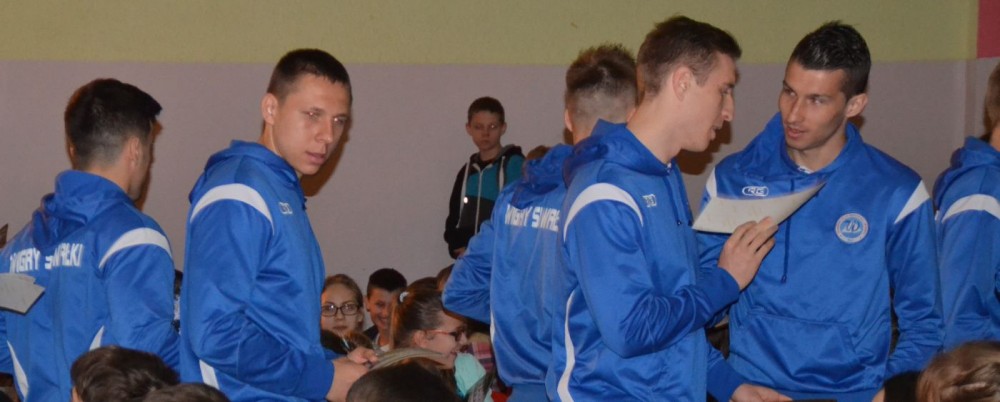 Klubowe gadżety, zdjęcia będące zarazem wejściówkami na niedzielny mecz wręczali uczniom Zespołu Szkół nr 7 piłkarze Wigier. Ta placówka nie bez powodu została wybrana na miejsce uroczystej prezentacji drugoligowej drużyny.