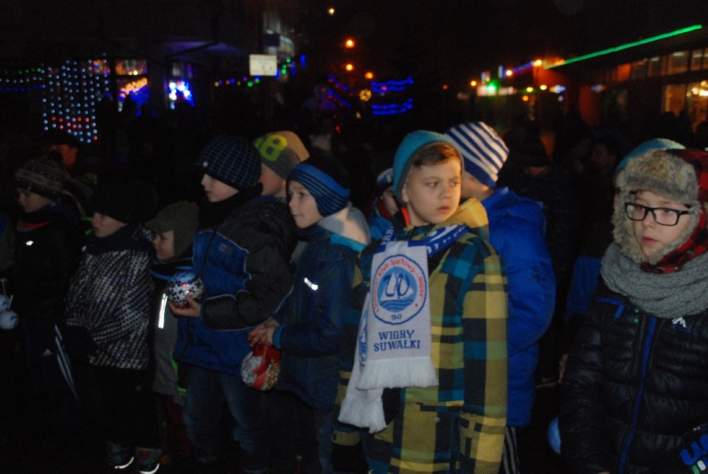 Po raz drugi na Pasażu Grande Synthe zapłonęła niebieska Wigierska Choinka. Wysokie na 4,65 m drzewko oplotło ponad 50 m kabla z niebieskimi lampkami. Bombki przynieśli najmłodsi i najstarsi piłkarze suwalskich Wigier, klubu, który za kilka dni wkroczy w 70-rok działalności.