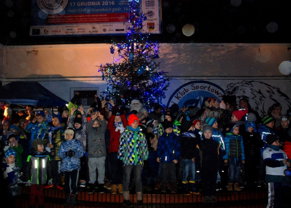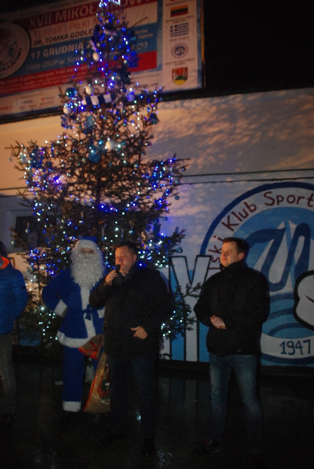 Å»yczenia piÅ‚karzom, ich rodzinom, kibicom i przechodniom, którzy na chwilÄ™ przystawali oglÄ…dajac choinkÄ™, zÅ‚ożyli prezes SKS Wigry SuwaÅ‚ki Dariusz Mazur i prezes Akademii PiÅ‚karskiej Wigry SuwaÅ‚ki Kamil Makarewicz.
