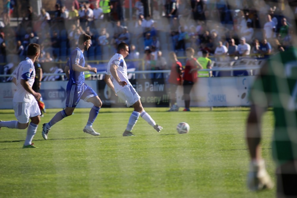 Wigry próbowały uratować chociaż punkt, ale odrobiny szczęścia zabrakło Michałowi Kopczyńskiemu. Ładnie przymierzył lewą nogą z woleja, ale piłka poleciała tuż nad poprzeczką.