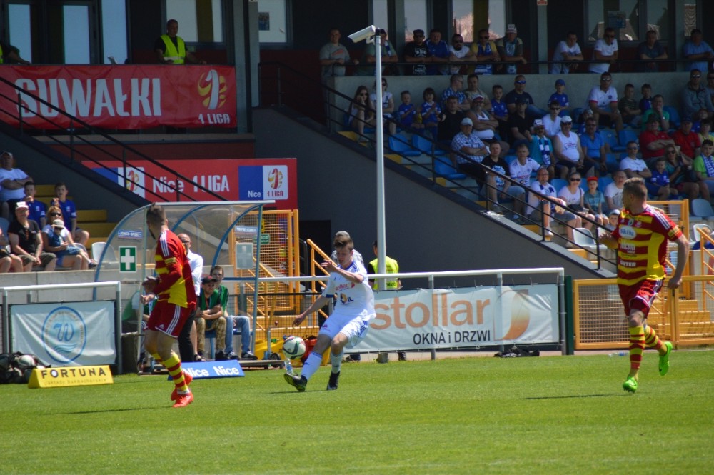 Damian Podleśny nie miał nic do powiedzenia przy żadnym ze straconych goli. Ponosi za to winę za tego pierwszego, najważniejszego, którego sprokurował po kwadransie gry. Wybiegiem i rzutem pod nogi próbował ratować nieporozumienie w suwalskiej defensywie, ale sfaulował Tomasza Mikołajczaka. Z rzutu karnego nie pomylił się Paweł Zawistowski.