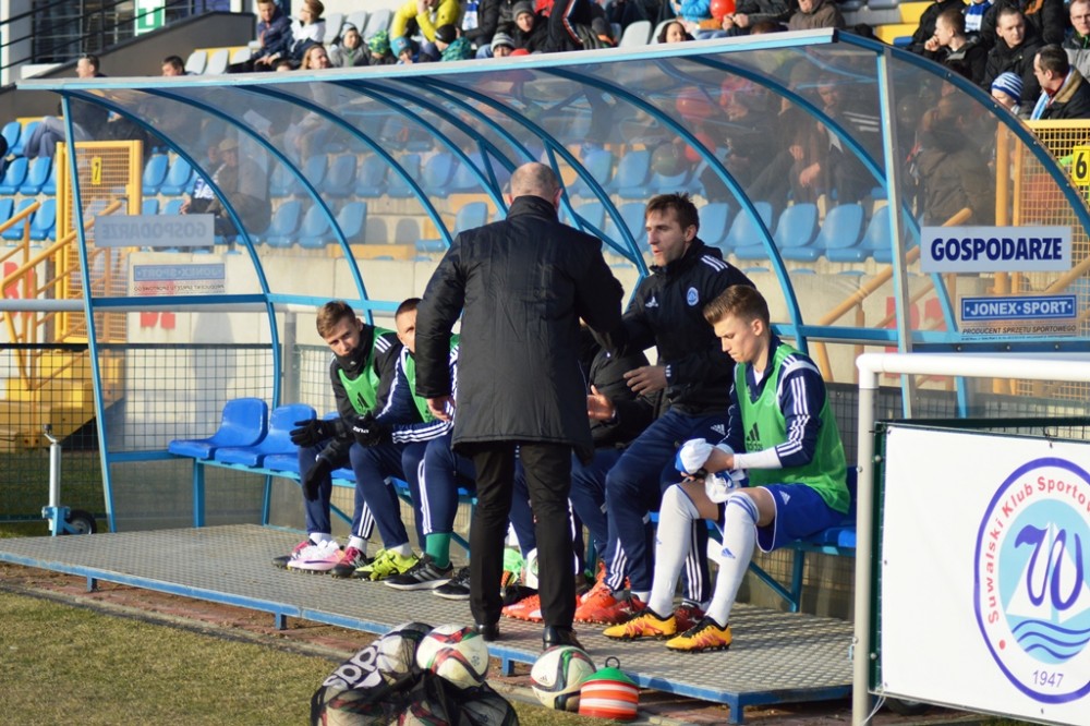 Nowy trener nie zdążył, niestety, oduczyć biało-niebieskich zadowolenia z prowadzenia jedna bramką. Suwalczanie przestali już tak mocno naciskać na rywala, co zemściło się już po 10 minutach. Sprowadzony zima z Ruchu Chorzów do Kluczborka Michał Szewczyk przez nikogo nie niepokojony przebiegł na 17, metrze wzdłuż pola karnego Wigier i kapitalnym strzałem pod poprzeczkę nie dal najmniejszych szans Karolowi Salikowi.