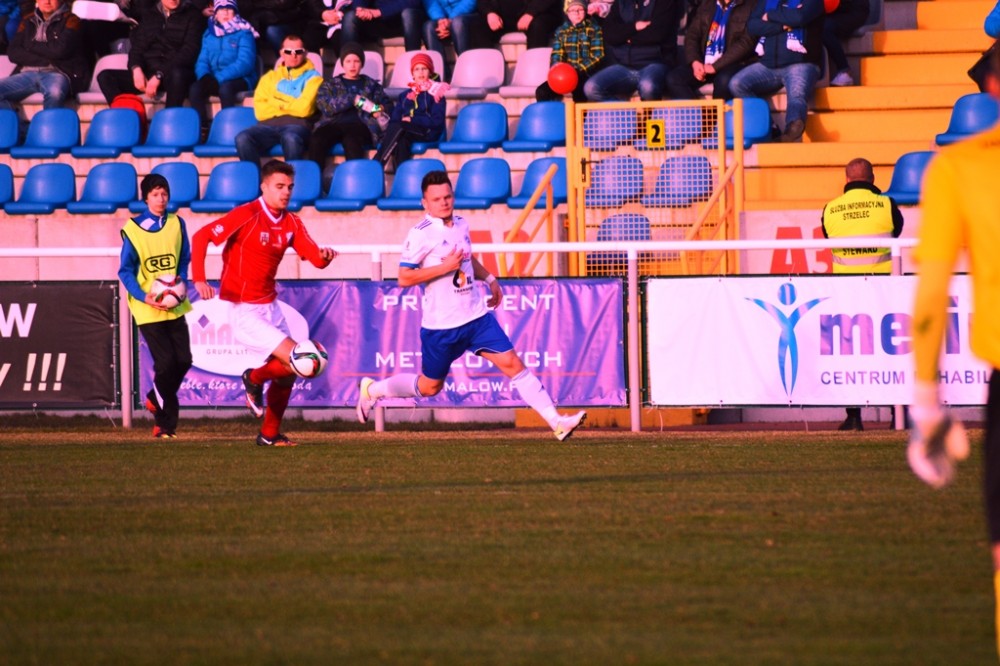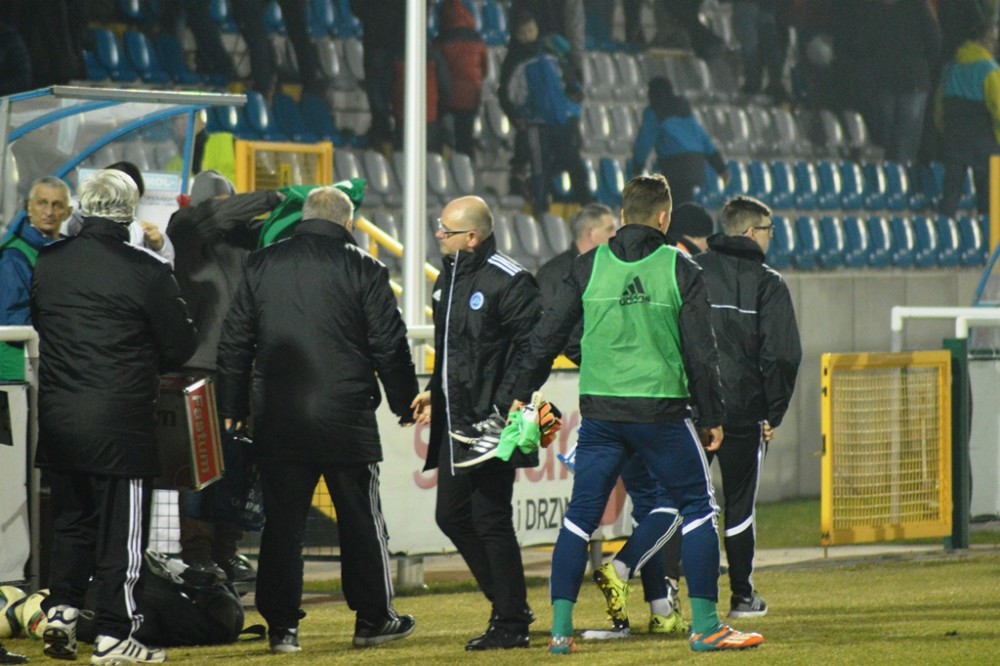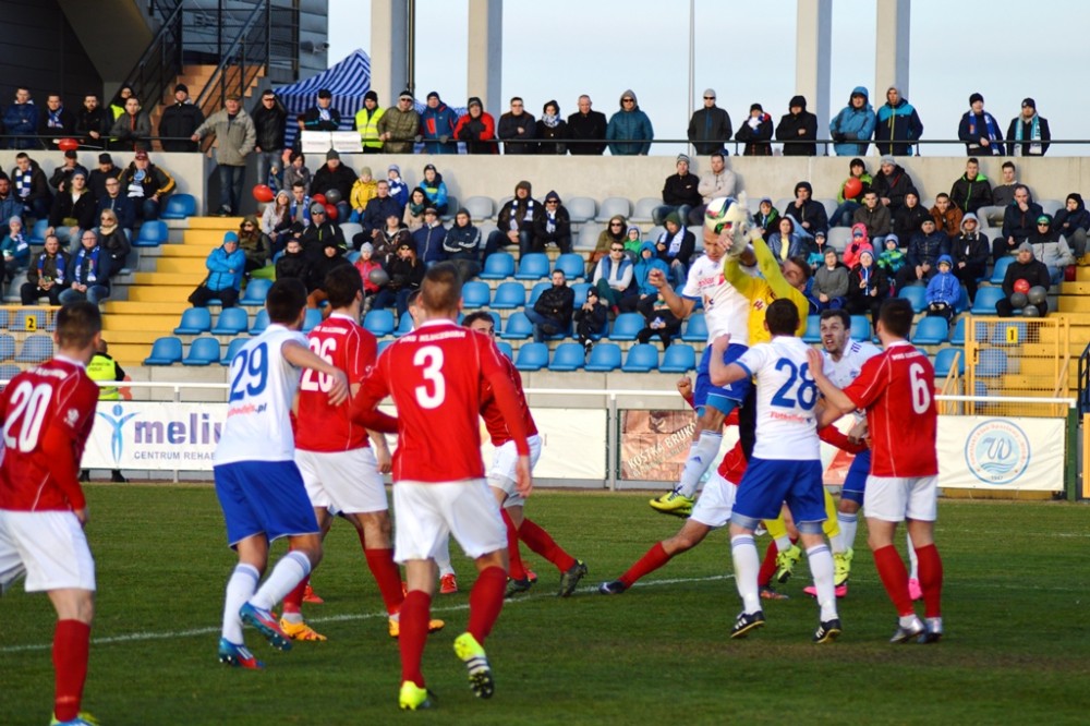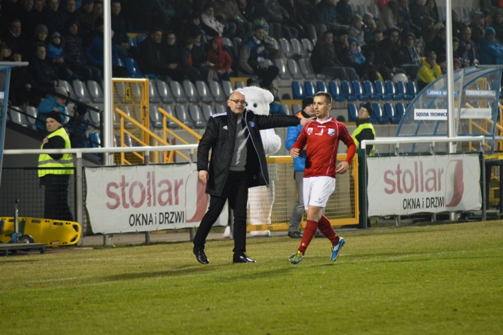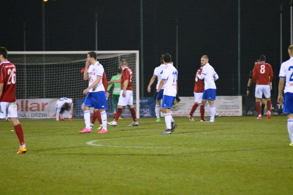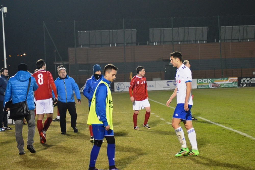 Plany szkoleniowca wzięły w łeb już po pięciu minutach drugiej odsłony. Piłkę na wolne pole dostał Maciej Kowalczyk. Chwila zawahania Karola Salika, czy nie wybiec i uprzedzić snajpera gości wystarczyła. Na 17. metrze wychodzącego na czyta pozycje Kowalczyka zahaczył Maciej Wichtowski, za co od razu został ukarany czerwona kartka i wyrzuceniem z boiska. Z rzutu wolnego ładnie nad murem gospodarzy przymierzył Rafał Niziołek, ale parada Karola Salika była jeszcze ładniejsza.