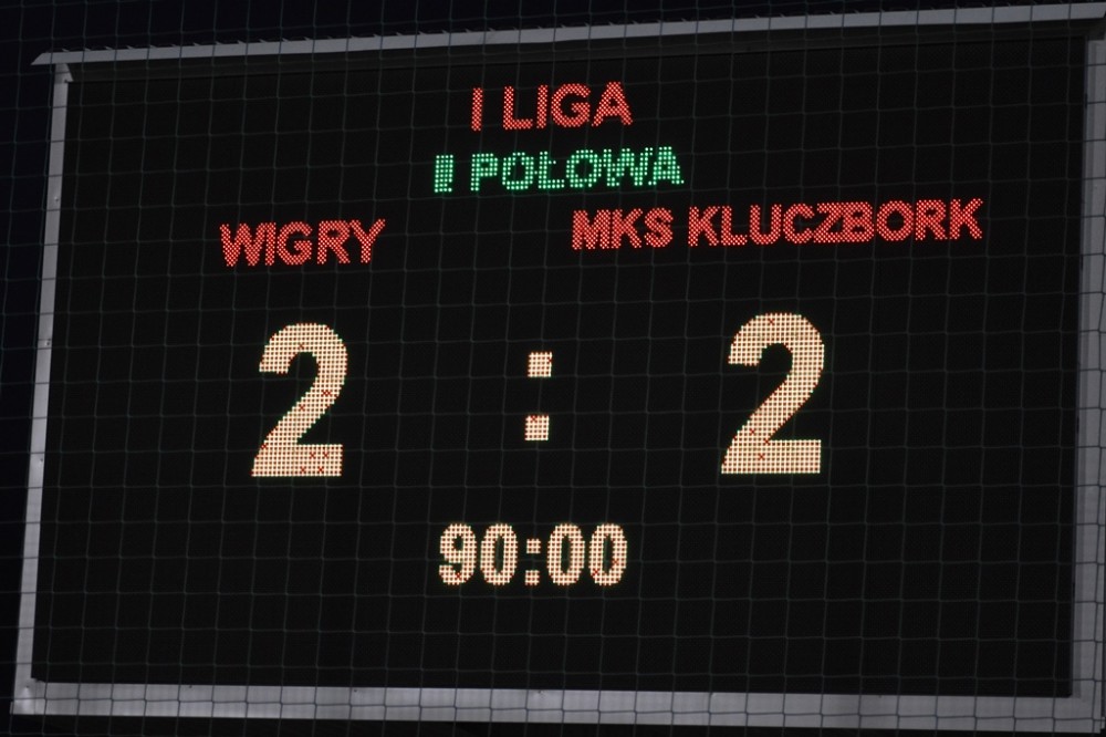 Jeszcze w samej końcówce gospodarze byli bliscy wygranej. Piękny strzał Damiana Kądziora obrońca z Kluczborka lekkim trąceniem piłki zdołał zamienić na rzut różny. Wigry biły trzy kornery z rzędu i po jednym z nich niewiele brakowało, by z gola cieszył się Tomasz Jarzębowski.