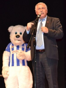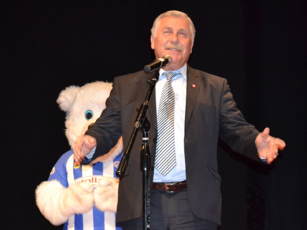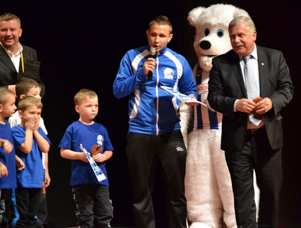 - Jeżeli uda siÄ™ wam awansować, bÄ™dziemy musieli o tym pomyÅ›leć - zadeklarowaÅ‚ prezydent CzesÅ‚aw Renkiewicz, który podczas gali otrzymaÅ‚ od biaÅ‚o-niebieskich koszulkÄ™ z nr. 2. – PiÅ‚ka nożna, jako sport wiodÄ…cy, byÅ‚a i musi być wspierana przez samorzÄ…d.