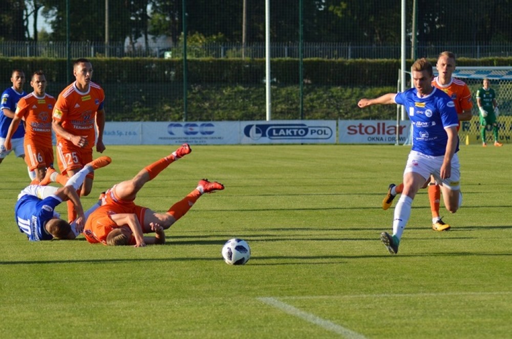 Karol Mackiewicz po raz pierwszy od września ubiegłego roku, od kiedy leczył ciężką kontuzję, zagrał od pierwszej minuty. Wytrzymał kondycyjnie, ba, 10 minut przed końcem popisał się piękną asystą wzdłuż bramki, po której Martin Adamec, inny wypożyczony z Jagiellonii piłkarz, dostawił nogę i Wigry prowadziły 3:1.