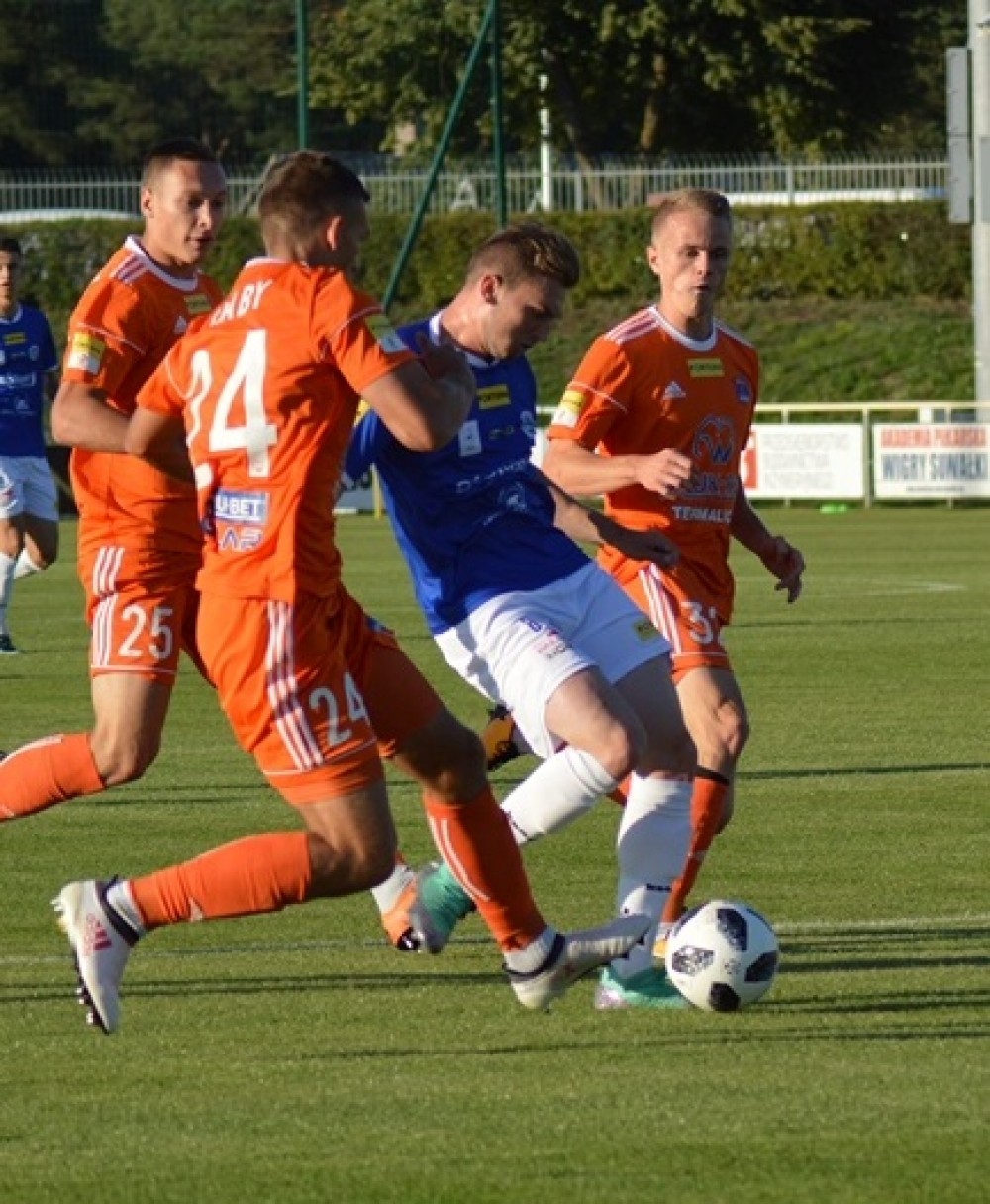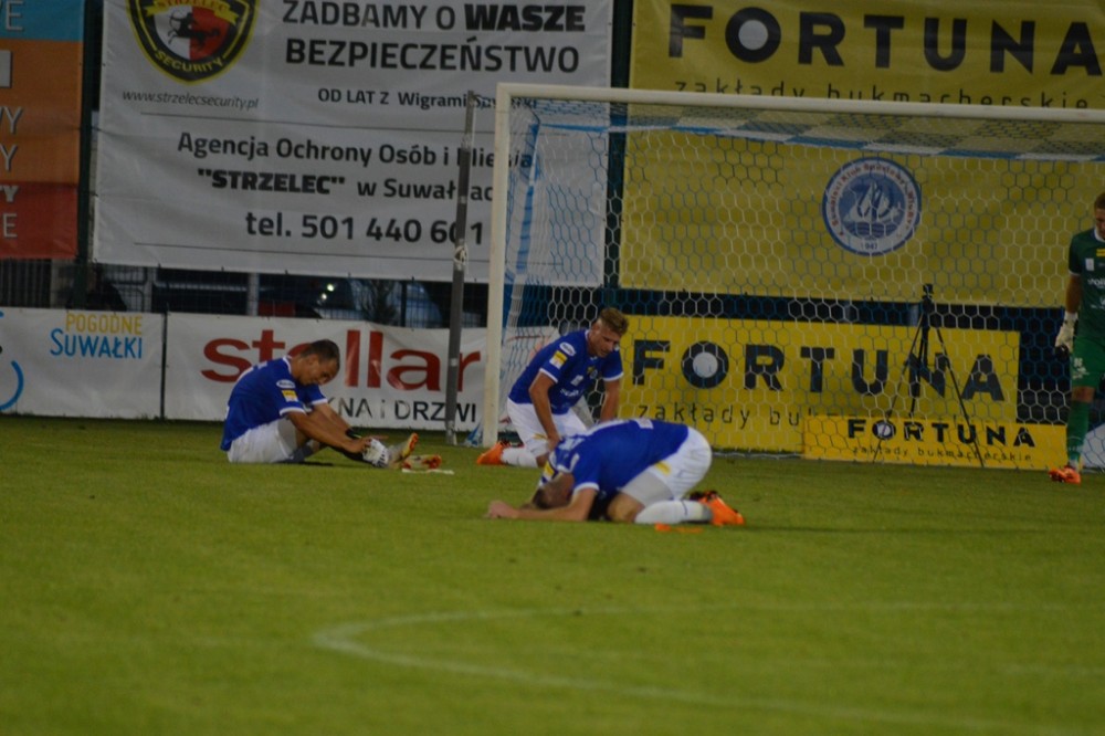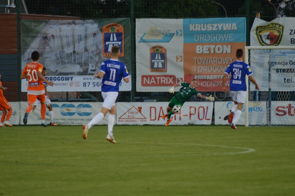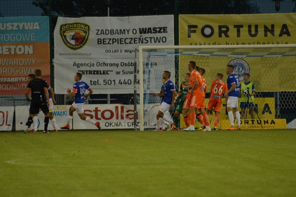 Bramkarz Wigier do przerwy dał się pokonać tylko raz po rzucie rożnym, po którym dośrodkowanie Romana Gergela i złe ustawienie gospodarzy strzałem nogą z pięciu metrów wykorzystał Dawid Szymonowicz. Po raz drugi Damian Węglarz, wypożyczony na kolejny sezon z Jagiellonii do Suwałk, musiał sięgnąć do siatki w 90 minucie, kiedy Martin Miković podał do Patrika Mišaka, a ten z lewej strony przymierzył w okienko. Gospodarze nie popadli w panikę, dzielnie wytrzymali oblężenie w doliczonych pięciu minutach, podczas których raz jeszcze mógł ich pokonać Mišak.