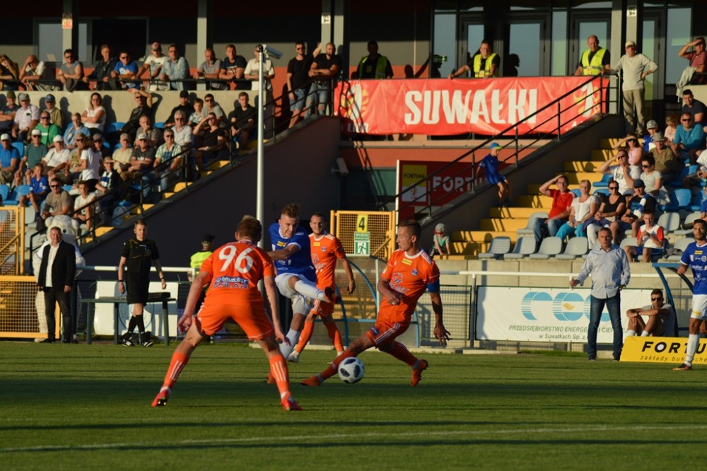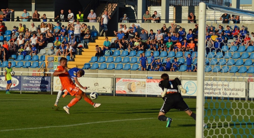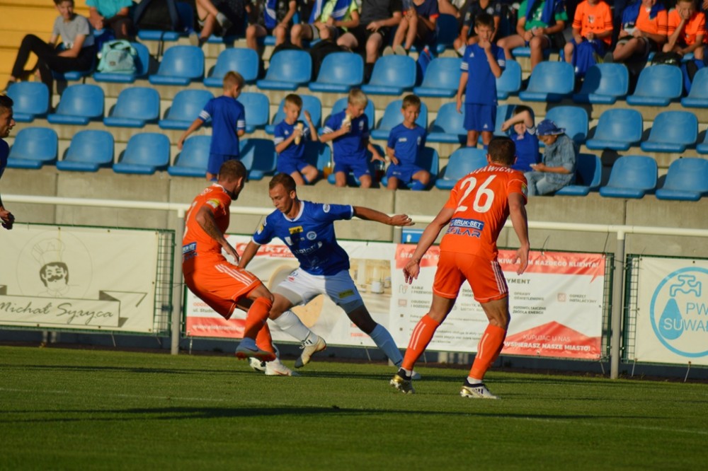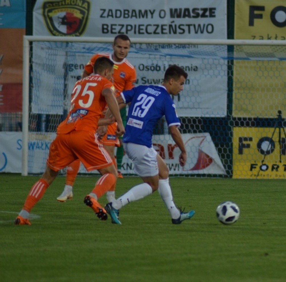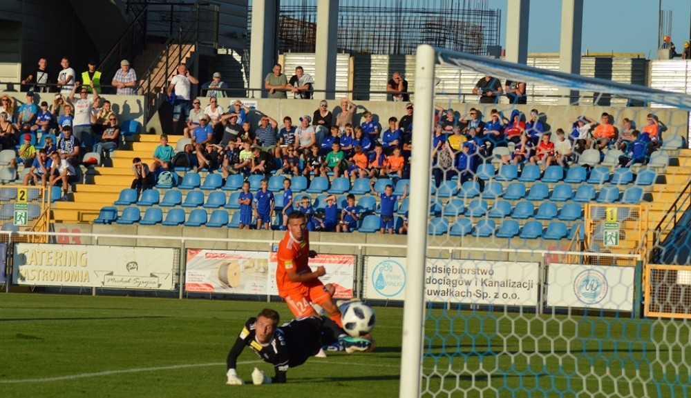 Bramkarz Wigier do przerwy dał się pokonać tylko raz po rzucie rożnym, po którym dośrodkowanie Romana Gergela i złe ustawienie gospodarzy strzałem nogą z pięciu metrów wykorzystał Dawid Szymonowicz. Po raz drugi Damian Węglarz, wypożyczony na kolejny sezon z Jagiellonii do Suwałk, musiał sięgnąć do siatki w 90 minucie, kiedy Martin Miković podał do Patrika Mišaka, a ten z lewej strony przymierzył w okienko. Gospodarze nie popadli w panikę, dzielnie wytrzymali oblężenie w doliczonych pięciu minutach, podczas których raz jeszcze mógł ich pokonać Mišak.