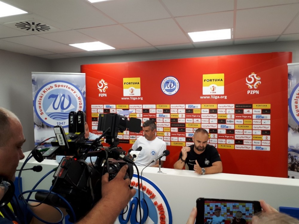 Na szczęście, od końcowego gwizdka sędziego możemy już oglądać meczową otoczkę. O pierwszą analize pokuszą się Andrzej Kaszkiel i Michał Kimszal, Andrzej Łukowski poprosi o ocenę jednego z piłkarzy, bohaterów meczu, a potem kamera przeniesie sie już na konferencję prasową z udziałem trenerów Wigier i Termaliki, zresztą byłych znakomitych piłkarzy - Adama Fedoruka i Piotra Mandrysza.